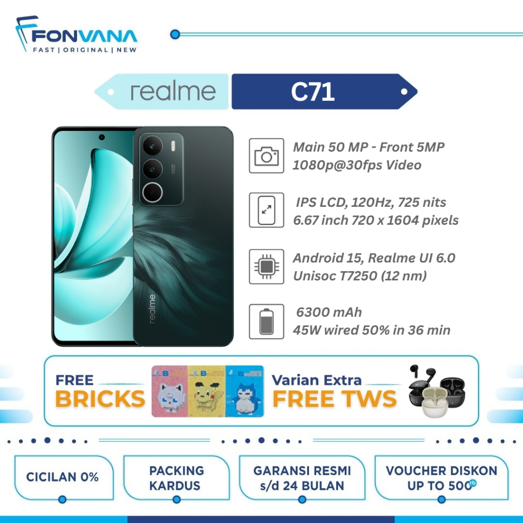 Realme C71 4/128GB, 6/128GB & 8/128GB - Unisoc T7250 (12 nm), 6300mAh 45W Android 15 | Garansi Resmi Realme Indonesia 1 Tahun