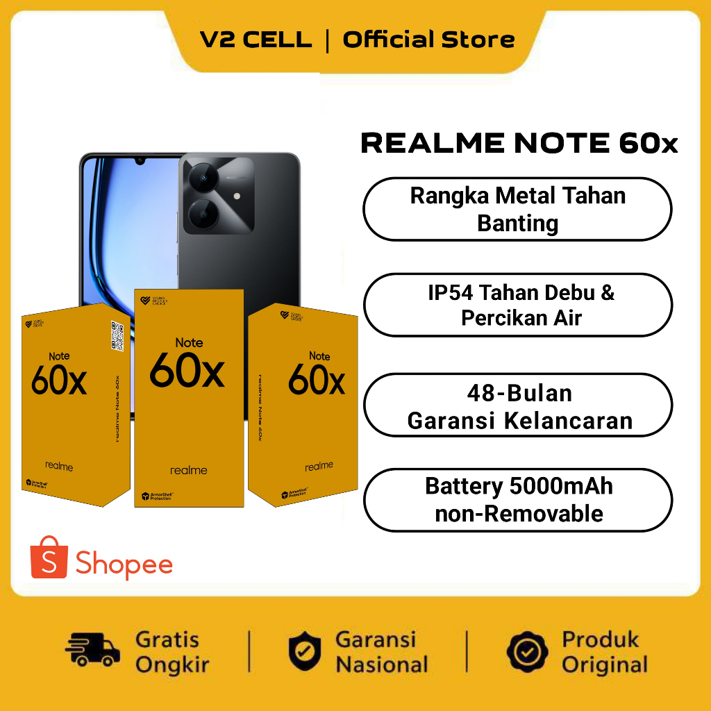 Realme Note 60x [4/64GB] [4/128GB] & Note 60 6+128GB Rangka Metal Tahan Banting [GARANSI RESMI]