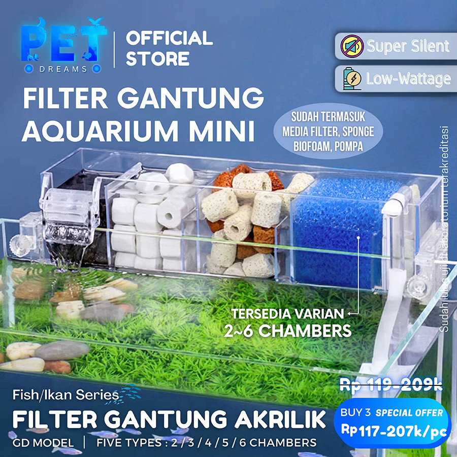 FILTER AIR HANG ON GANTUNG AKRILIK AQUARIUM EXTERNAL HANGING HANGON AKUARIUM AQUASCAPE KECIL MINI BESAR IKAN