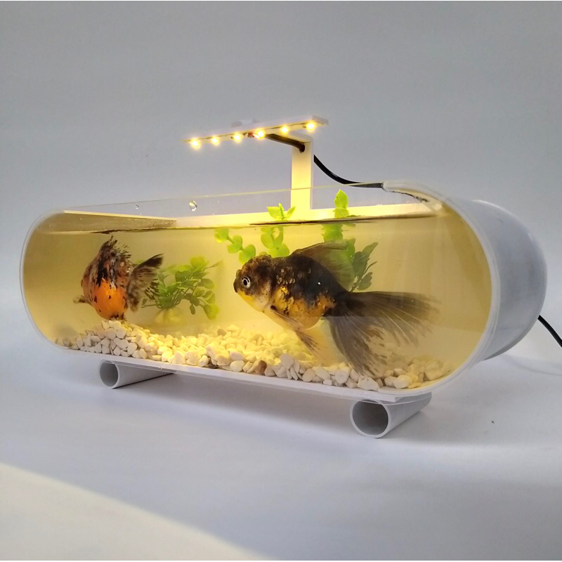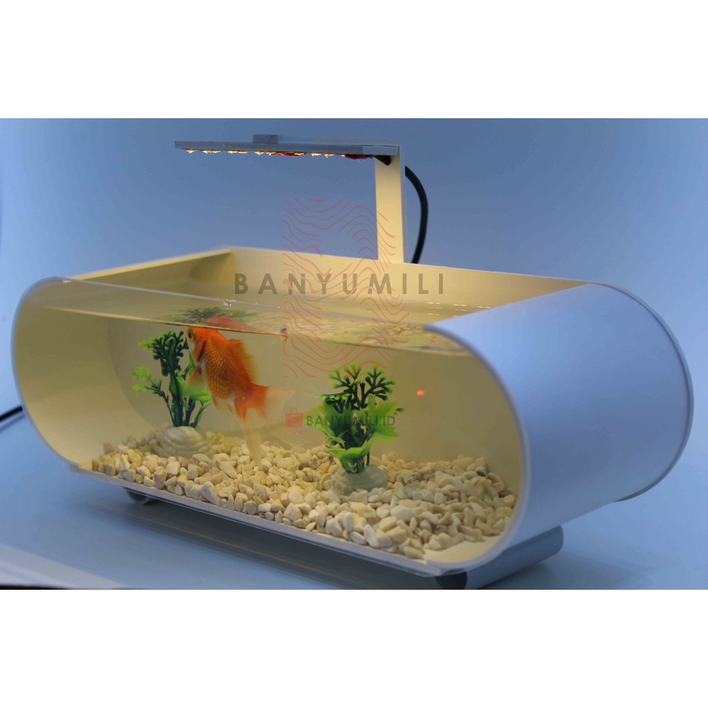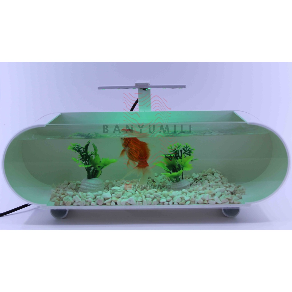 AQUARIUM / AKUARIUM MINI IKAN HIAS FULL SET , LAMPU LED + KERIKIL + TANAMAN HIAS