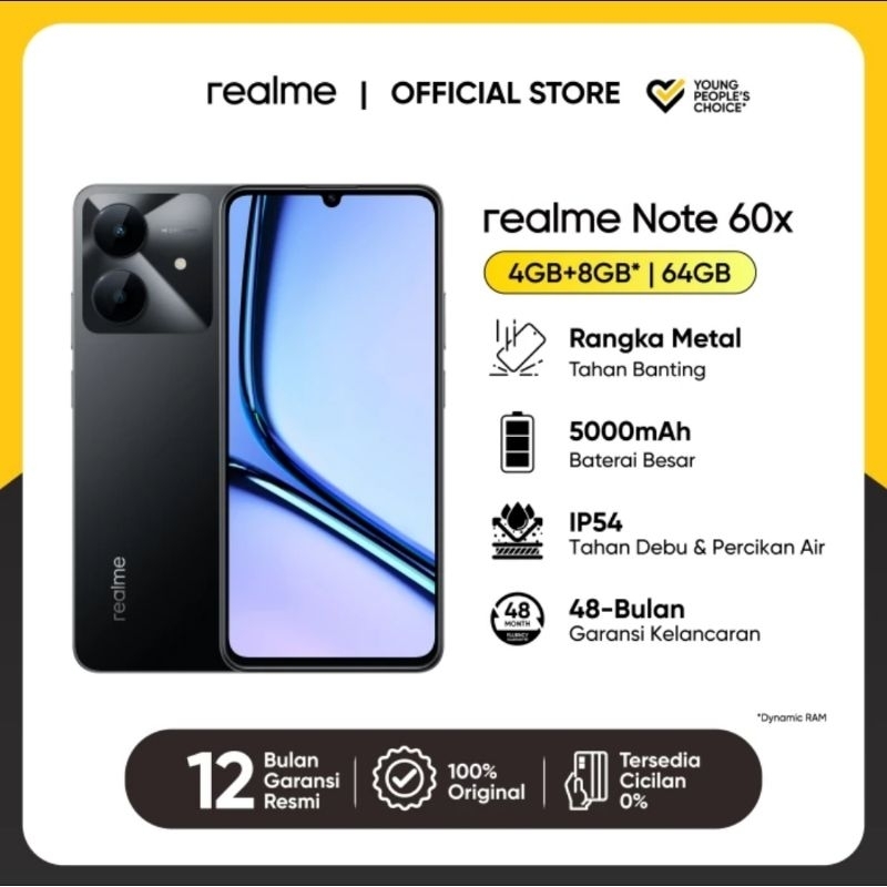 Realme Note 60x RAM 4+8GB /128GB Rangka Metal Tahan Banting - Garansi Resmi