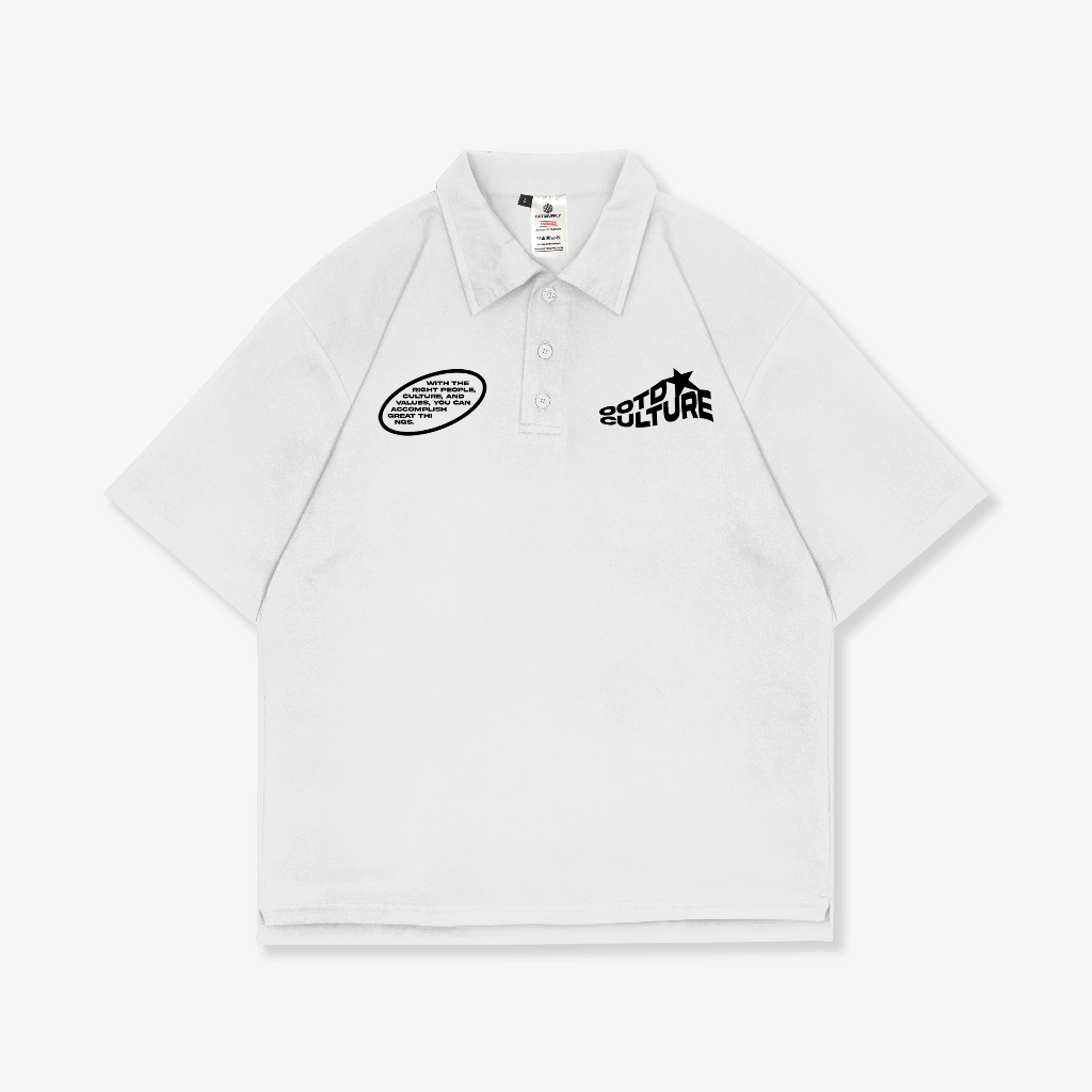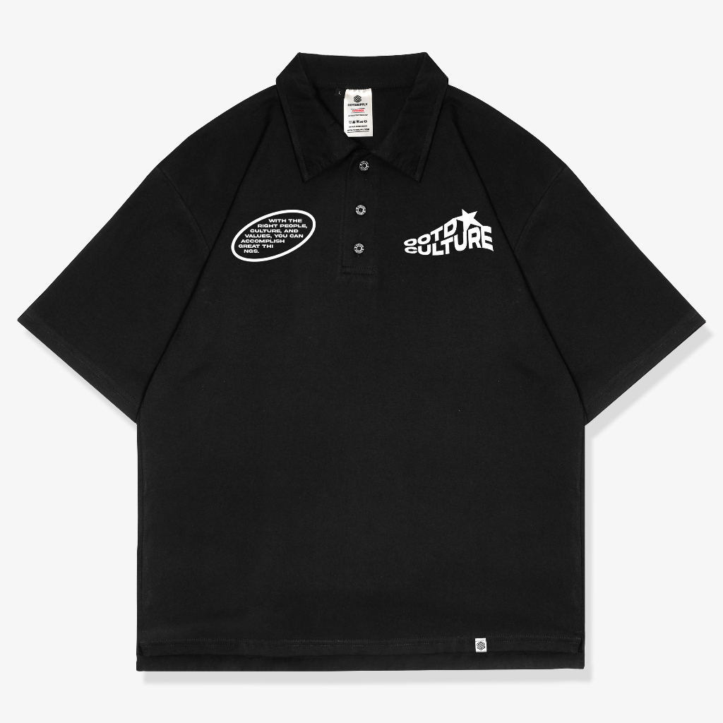 OOTDSUPPLY Oversize Polo Shirt Culture Black & White l Kaos Oversize Pria dan Wanita OVZ-PS001