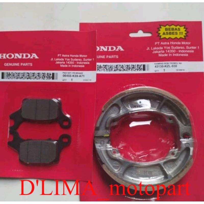 Paket Kampas Rem Depan Belakang Genio Vario 125 150 160 Cbs New Led Esp Baru 2018 K59 -Kzl