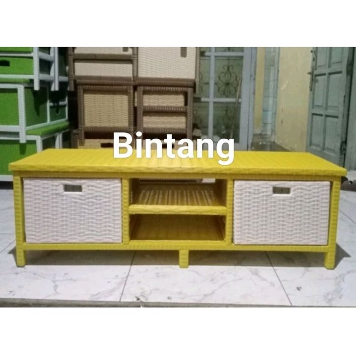 Aminah Store Meja Tv Rotan Sintetis Aesthetic 2 Laci Rak Susun Minimalis / TERLARIS Lemari Rotan Sintetis 2 Laci Dvd