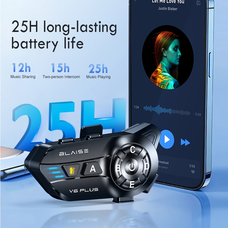 BLAISE V6 Plus Intercom Helm headset Interkom buat 6 Riders Musik Sharing Waterproof Audio Electronic Motorcycle Walkie Ht Talkie