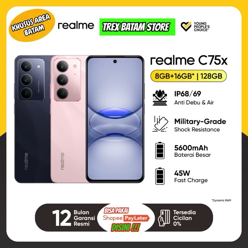 REALME C75X 8GB + 16GB / 128 GB BATERAI 5600 mAh 2025 NEW IP68/69 ANTI DEBU & AIR GARANSI RESMI [ BATAM ]
