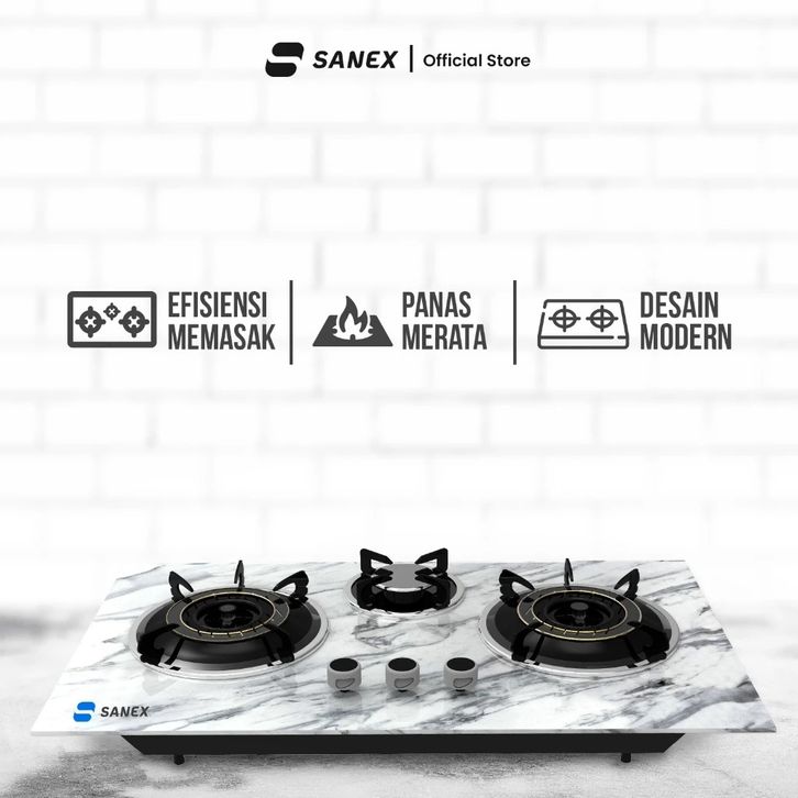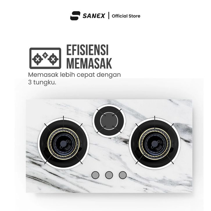 [ACE FASHION] Kompor Murah / Kompor Tanam / SANEX Kompor Gas Tanam 3 Tungku Marble Series SN-KT301