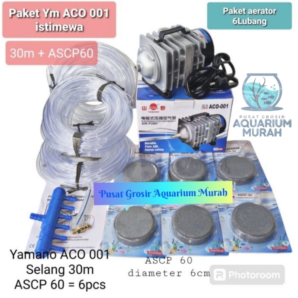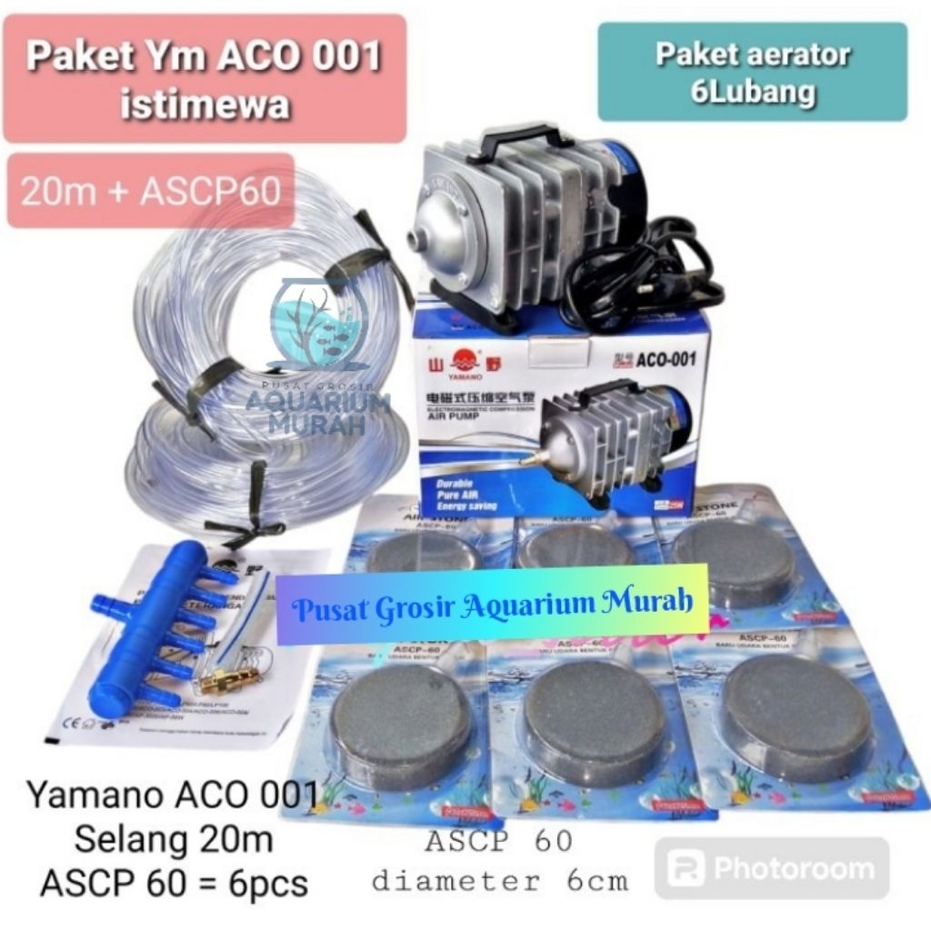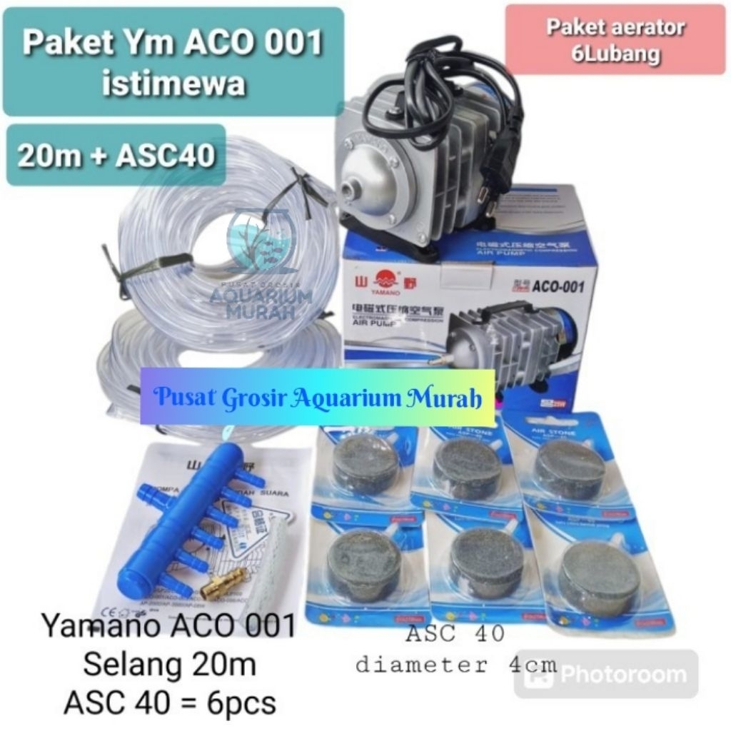 PAKET AERATOR 6 LUBANG ISTIMEWA. YAMANO ACO 001. KHUSUS KOLAM IKAN PETERNAK BUDIDAYA IKAN- 10M+ASC40