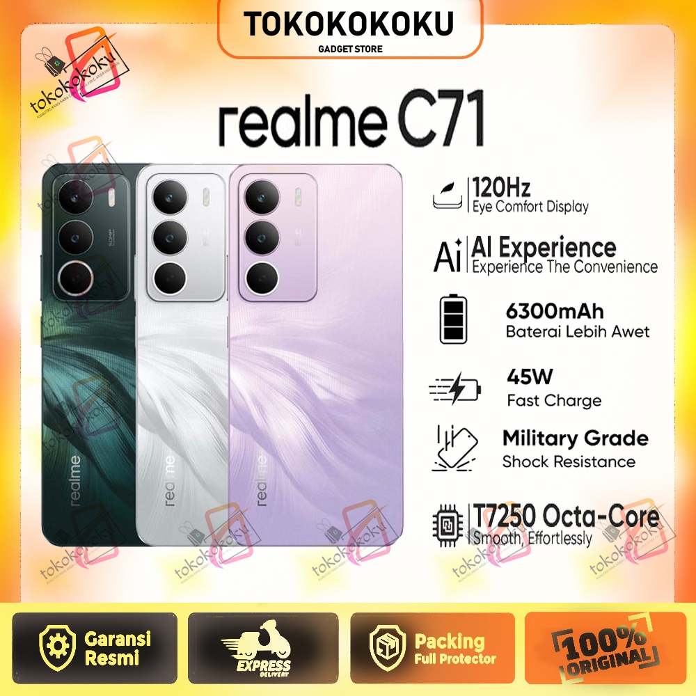 Realme C71 NFC 4/128GB, 6/128GB, 8/128GB - Ekstend up to 24GB | 6300mAh + 45W Fastcharge | Unisoc T7250 | Over 9 Hour Gaming when 100 PERSEN Charged | Garansi Resmi