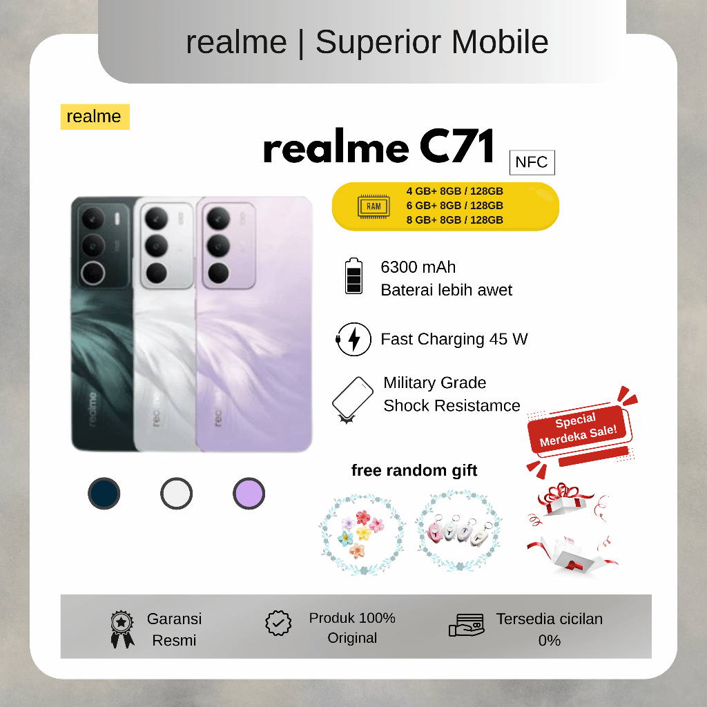 realme C71 4GB+8GB128GB| 6300mAh Baterai awet| 45W Fast Charge| Military Grade (Shock Resistance)| GARANSI RESMI