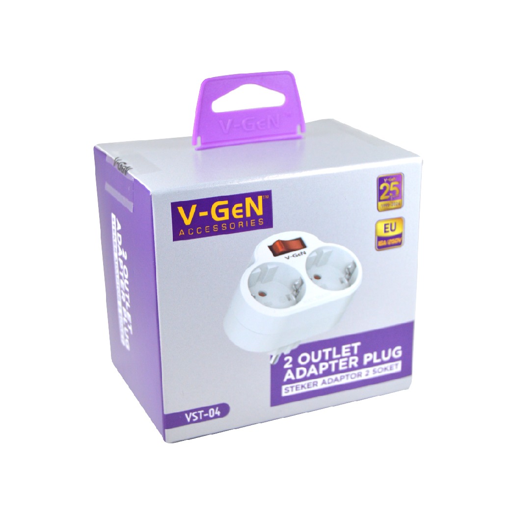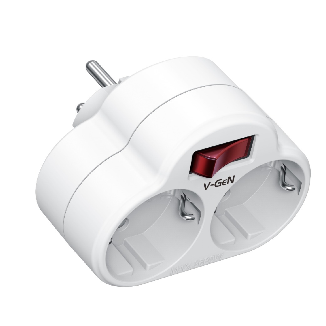Steker Adaptor Plug V-GeN VST-04 2 Socket With On Off Button 3680W SNI