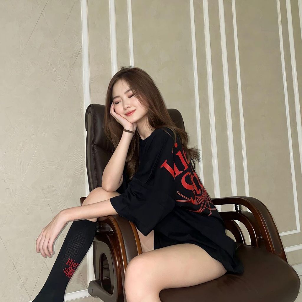 Hierarchy Studios - Flowers Wide Spider Lily Oversized T-shirt Black
