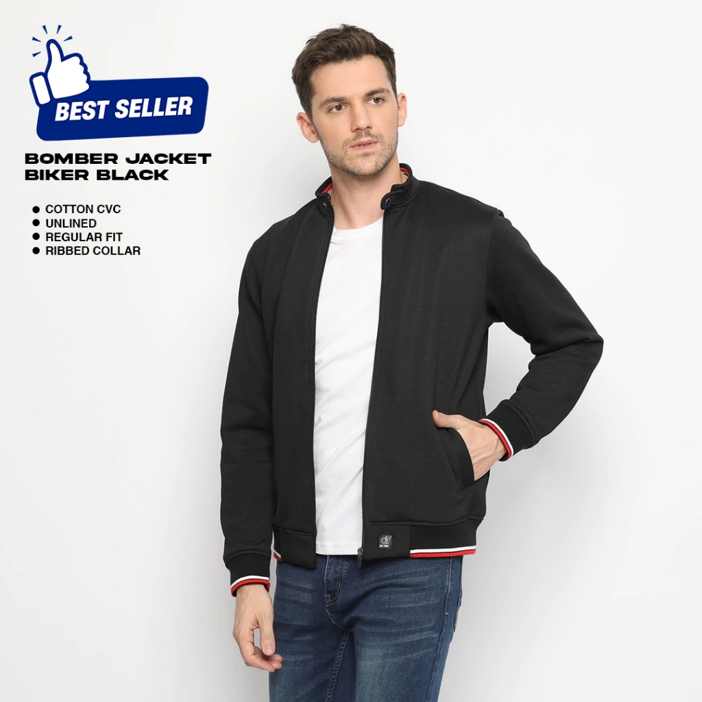d&f CVC Jaket pria biker - hitam with button