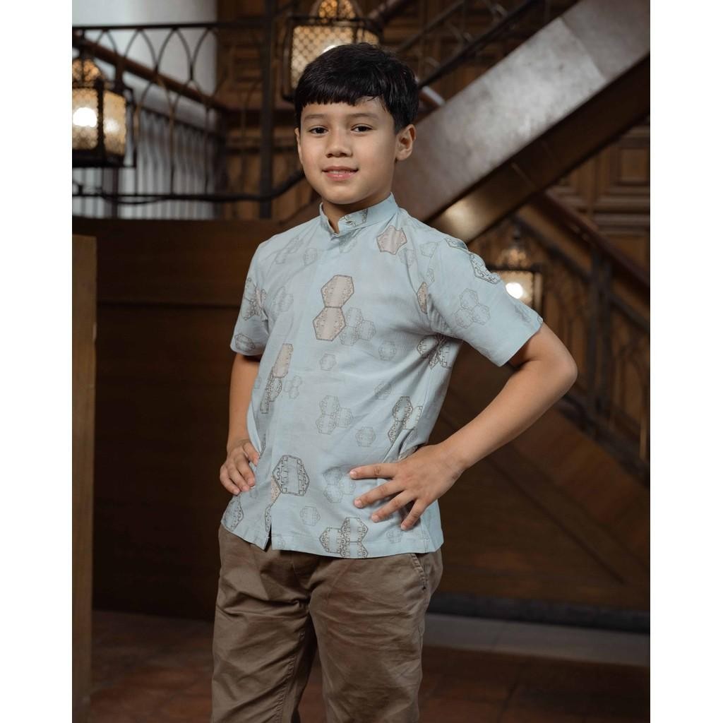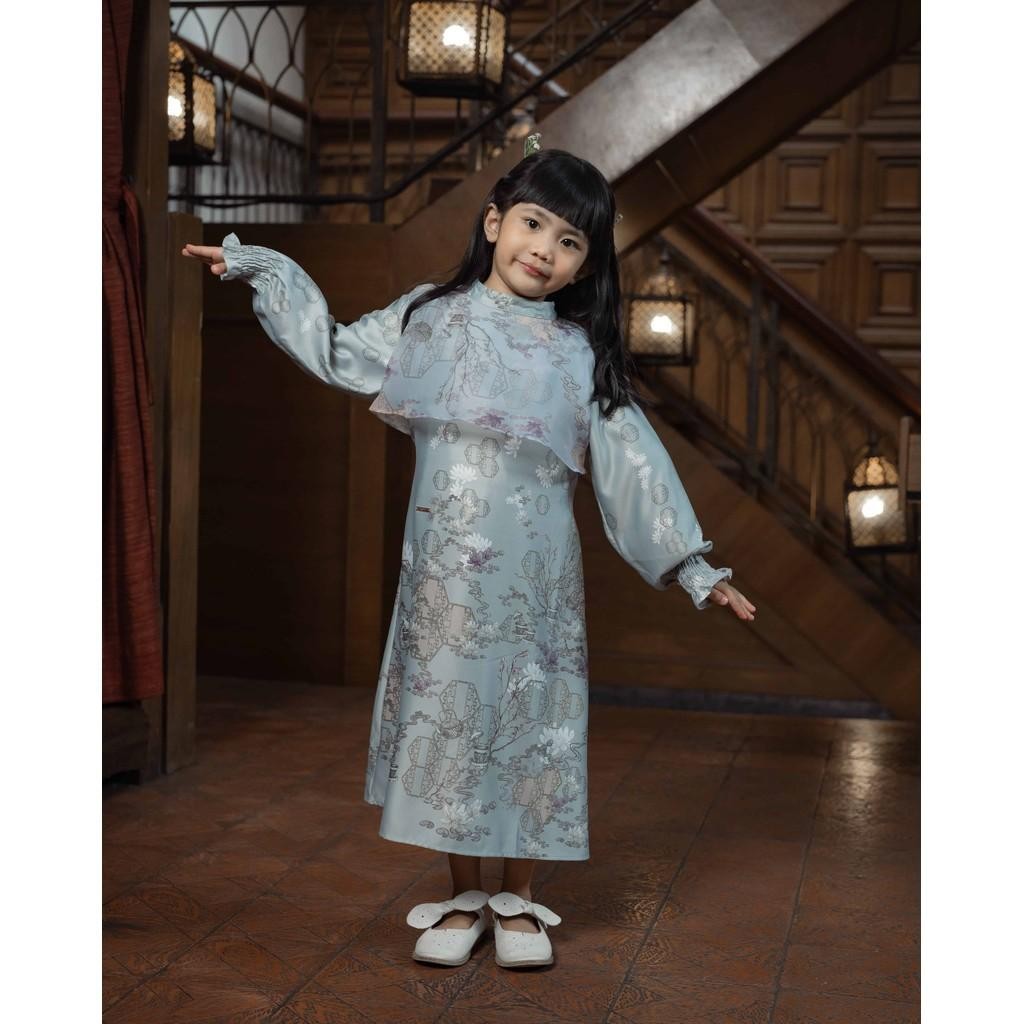 Mayoutfit Tea House Family Set Smoke Blue Series | Sarimbit Lebaran Baju Muslim Raya Keluarga