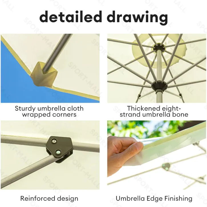 WTHB Outdoor Tenda Payung Payung Jualan 270CM Pantai Outdoor Umbrella UV Perlindungan Kain