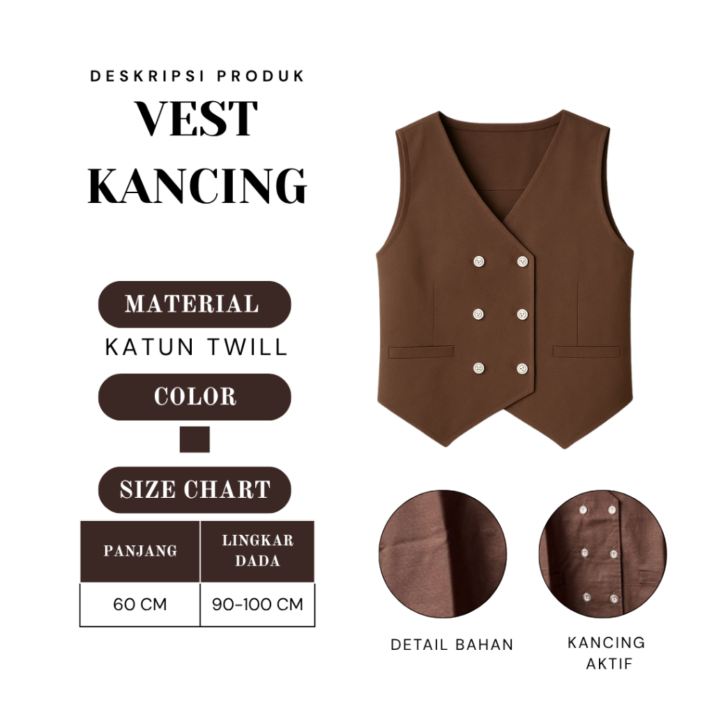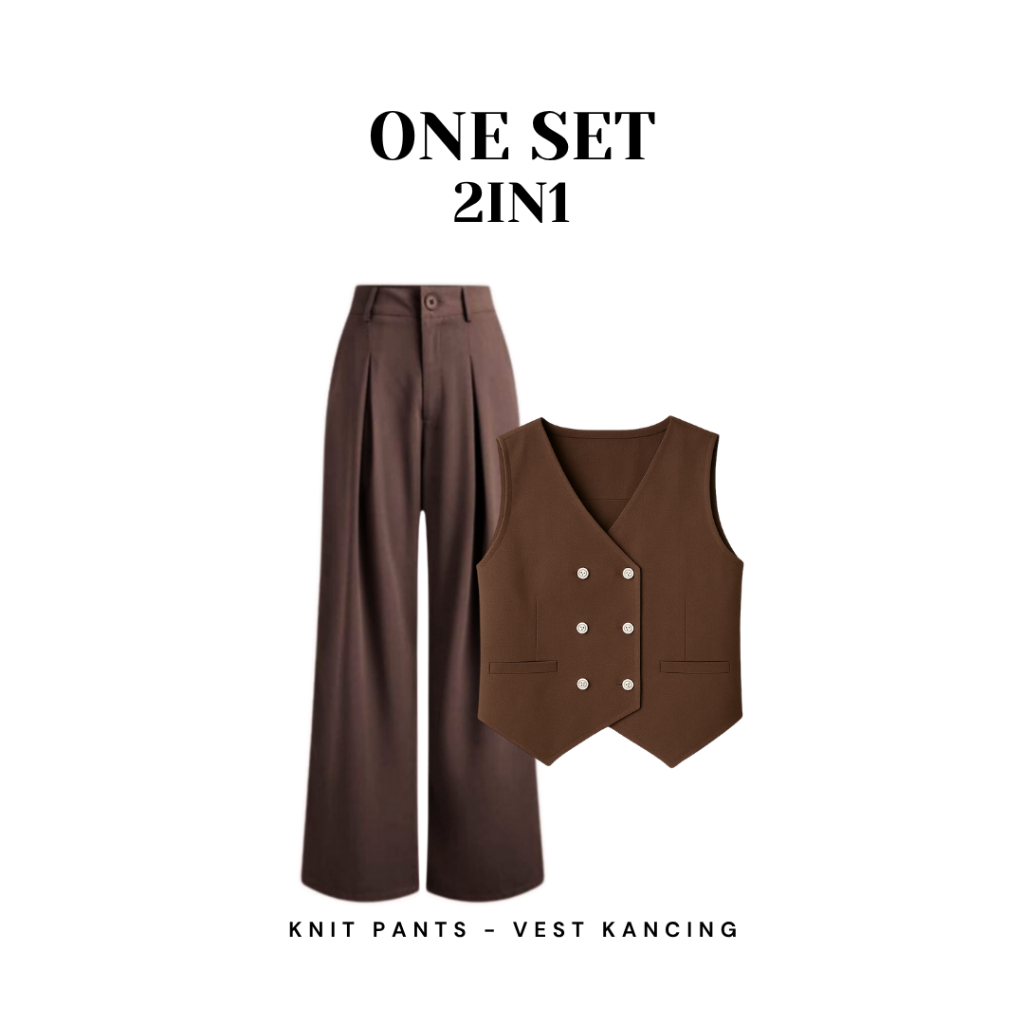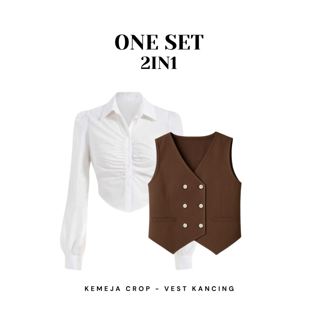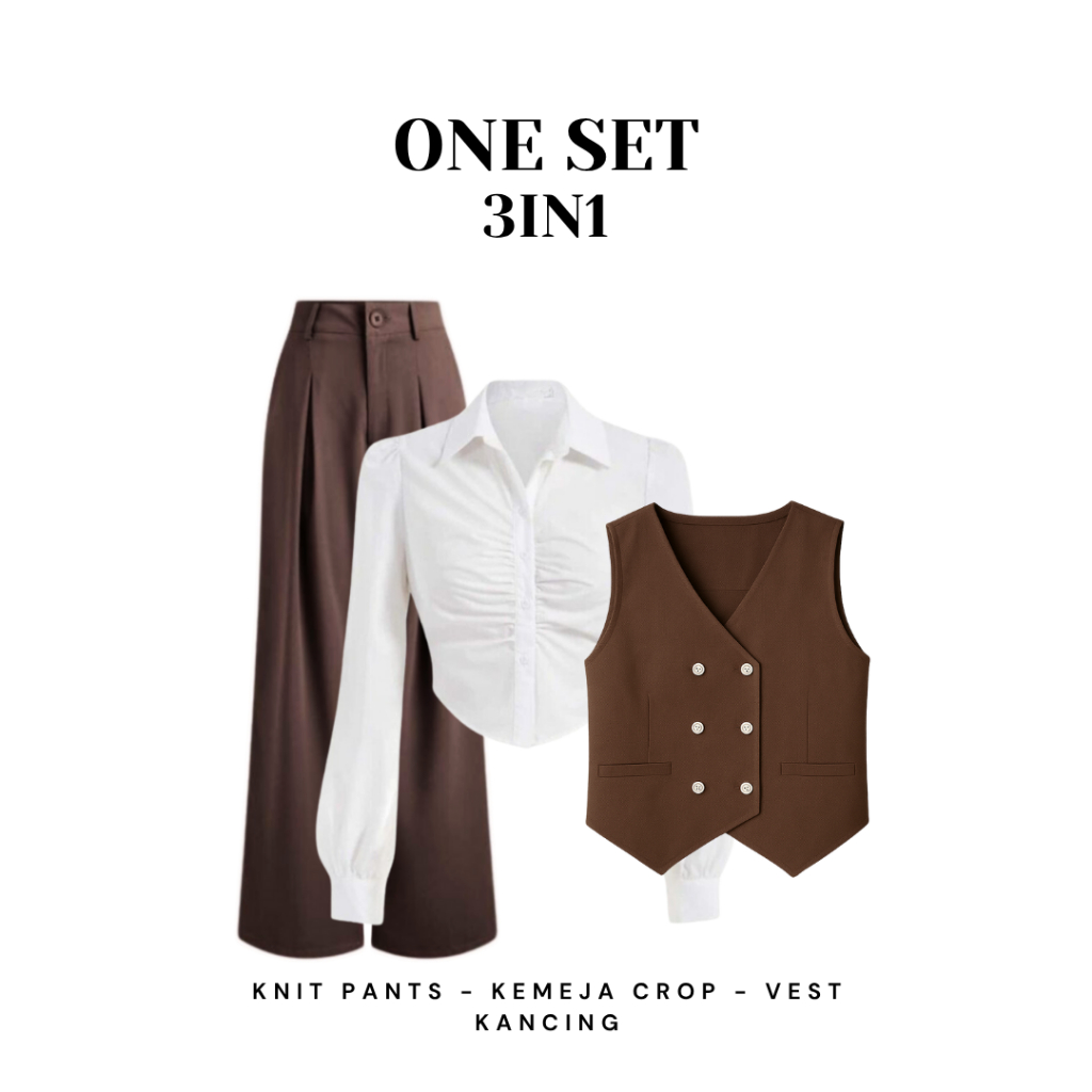 ONE SET KOREAN STYLE (KEMEJA CROP, VEST COKLAT, KNIT PANTS COKLAT) OUTFIT YEARBOOK VINTAGE - CTO57