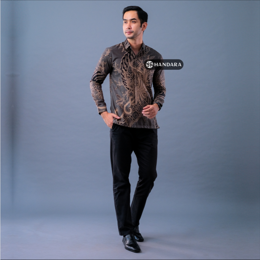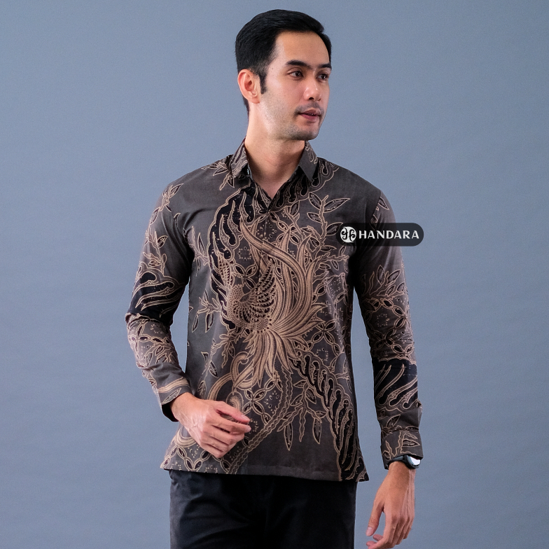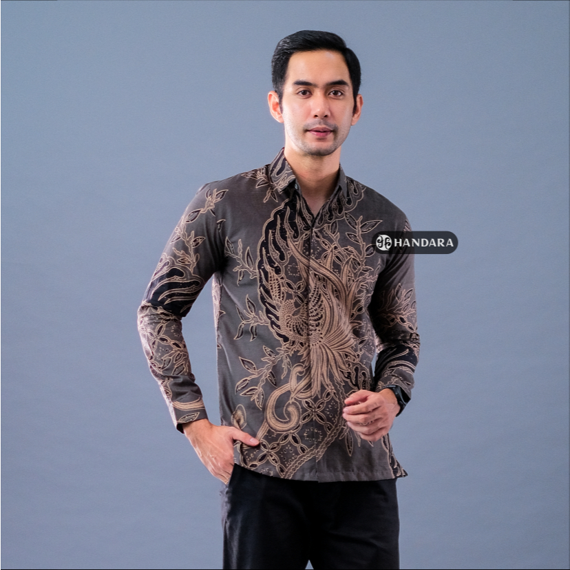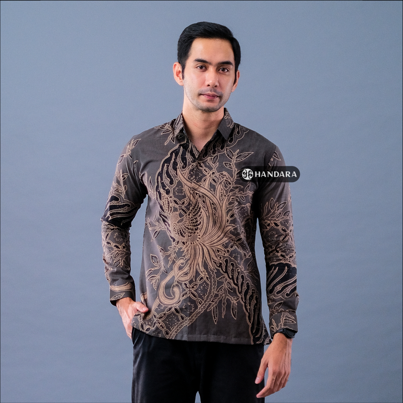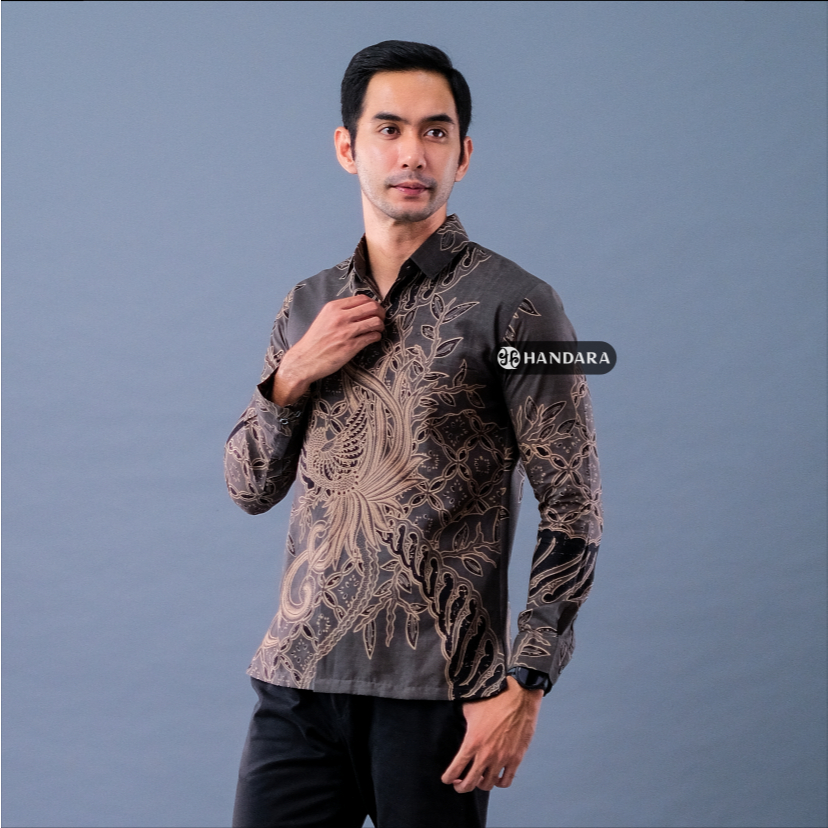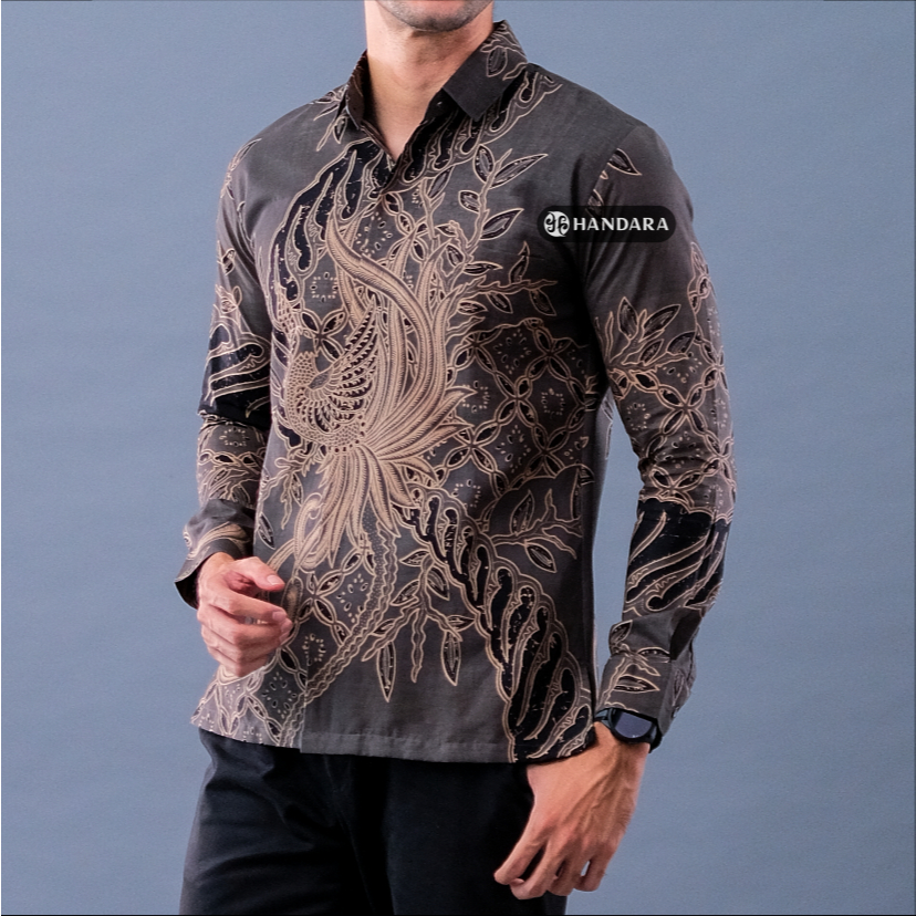 Handara Batik Premium Pria Lengan Panjang Slim Fit Furing - Peksi Ulir Ash