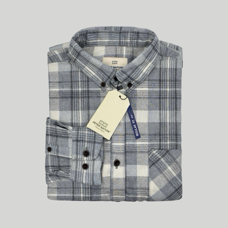 Peternation kemeja flanel pria wool basic panjang regular fit F2008