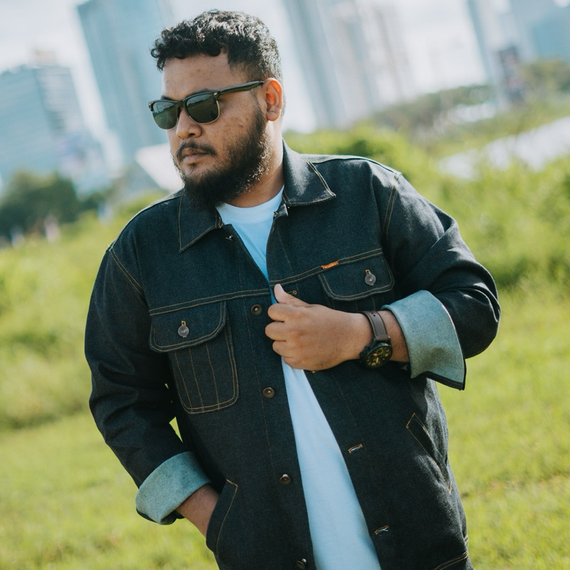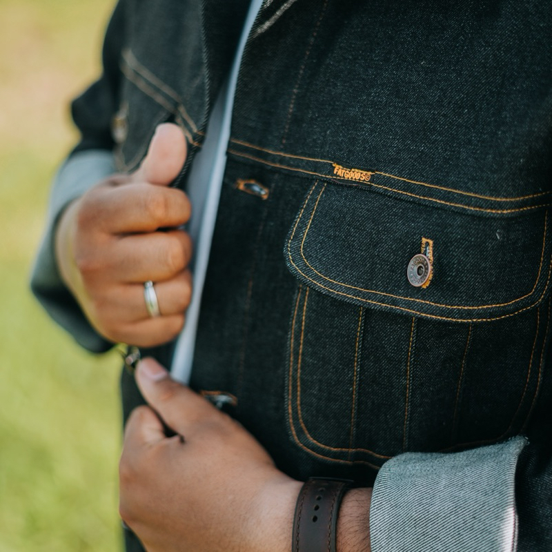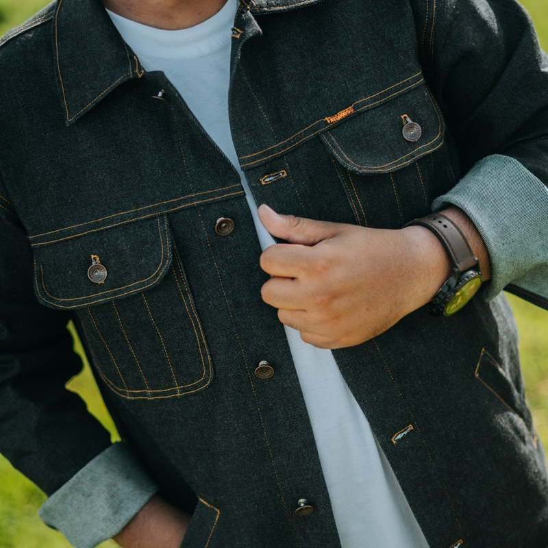 Fatgoods Jaket Denim Jeans Jumbo Pria Biru dongker Denim Jeans