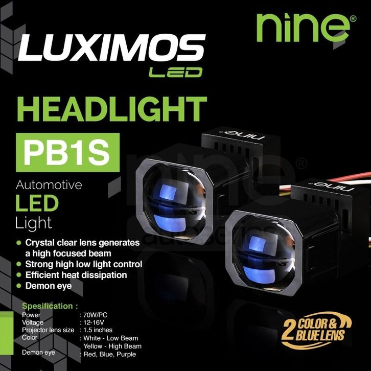 Promo Sepasang Nine LUXIMOS LED PB1S Billed 1,5 Inch 2 Warna Putih Kuning 70 Watt Devil Red/Blue/Purple Super Terang Or