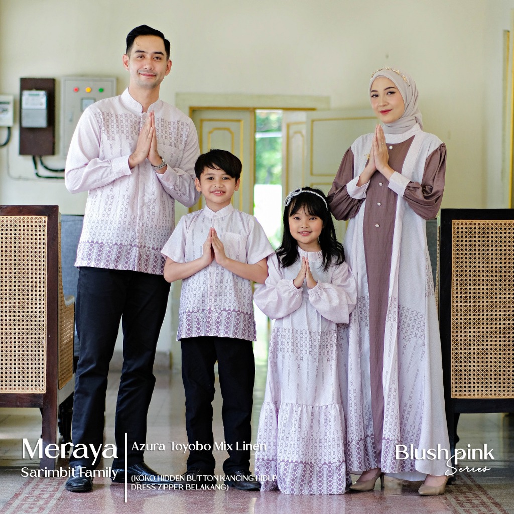 Meraya Family Set Sarimbit Lebaran Keluarga Couple Gamis Muslim One Set Koko Kemeja Pria Cowok Kurta Dress