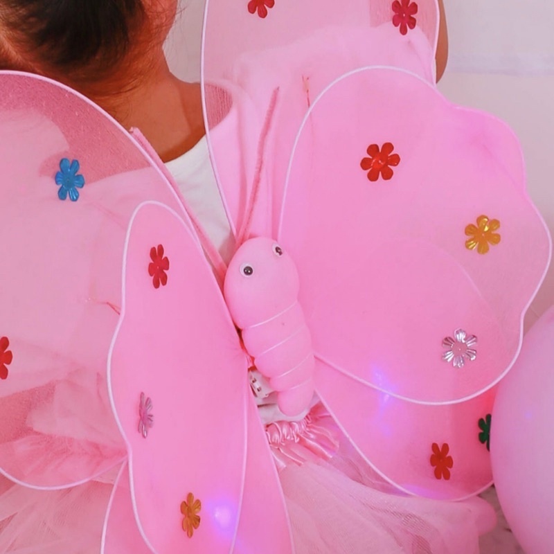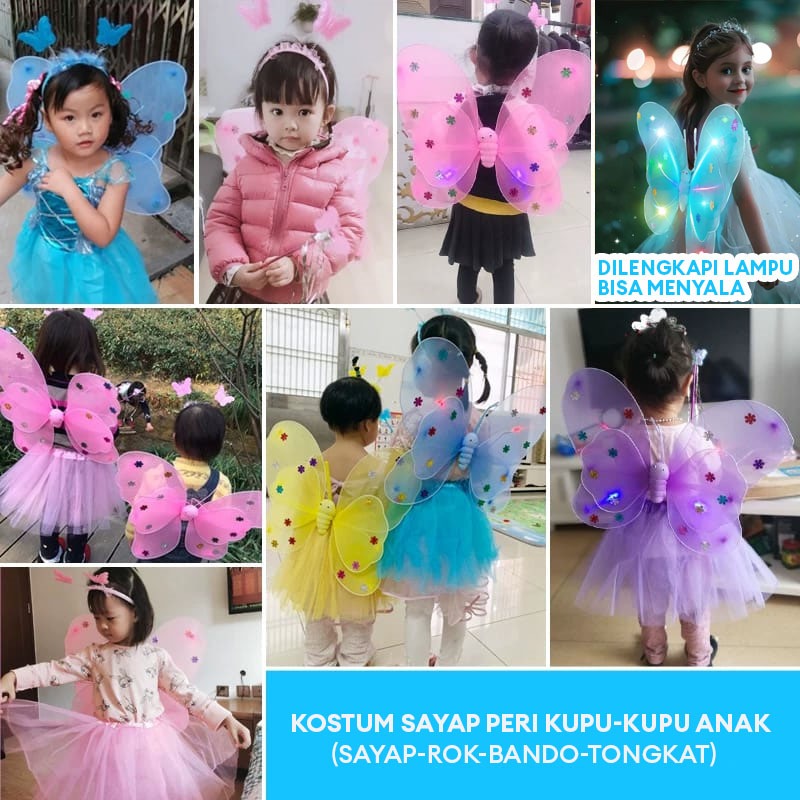 Kostum Sayap Peri Kupu Kupu Anak Bercahaya LENGKAP DENGAN SAYAP KUPU-KUPU, ROK, BANDO, TONGKAT