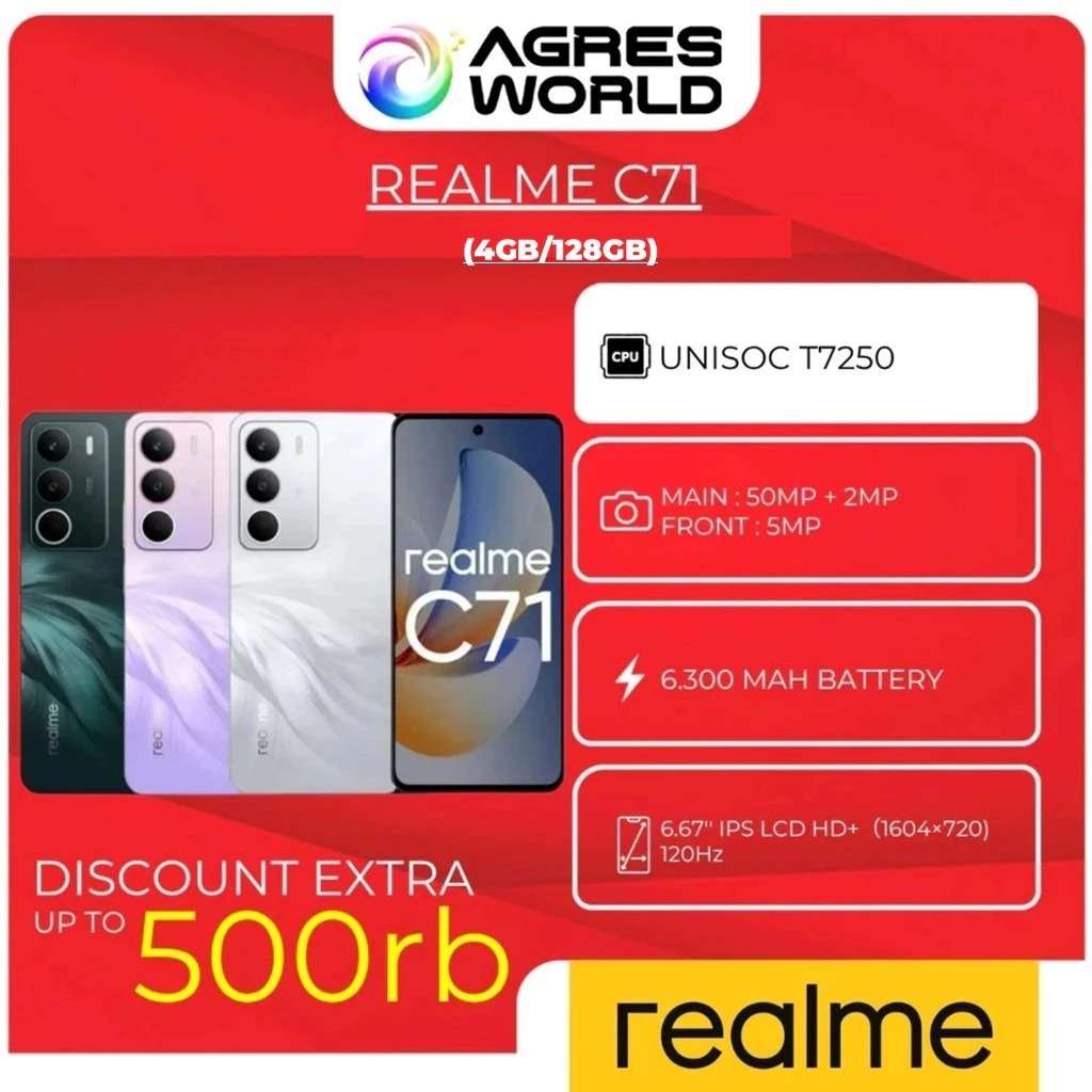 Official realme C71 4GB+8GB |128GB (6300 Baterai | 45W Fast Charge | Military Grade Shock Resistance | NFC)