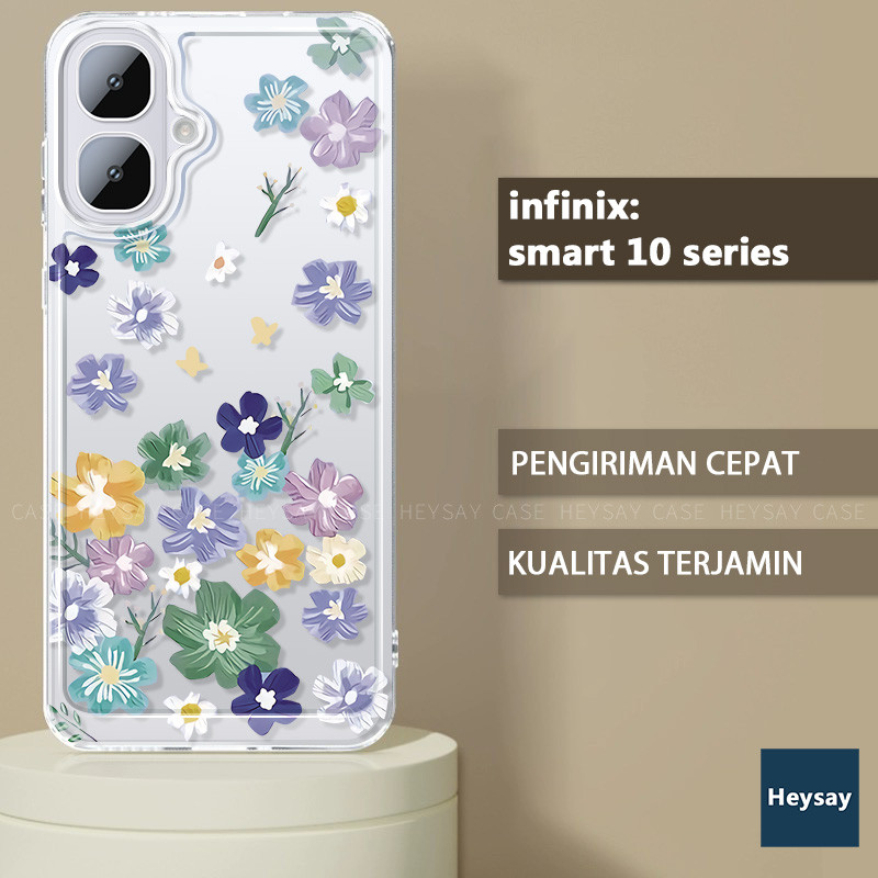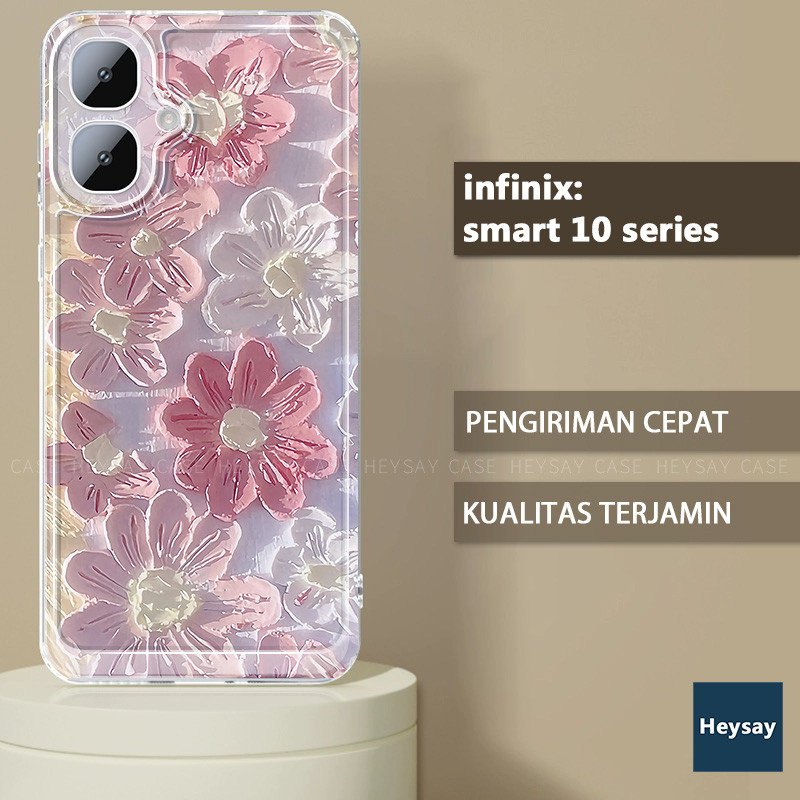 Bunga NEW Untuk Kucing Ribbon Hati Pink Case Hp Infinix Smart 10 Bunga Shin Chan Kupu-kupu Pro Plus 4G 5G Soft Casing Tanaman Soft Tk Cewek Terbaru Lucu Premium Mewah Couple