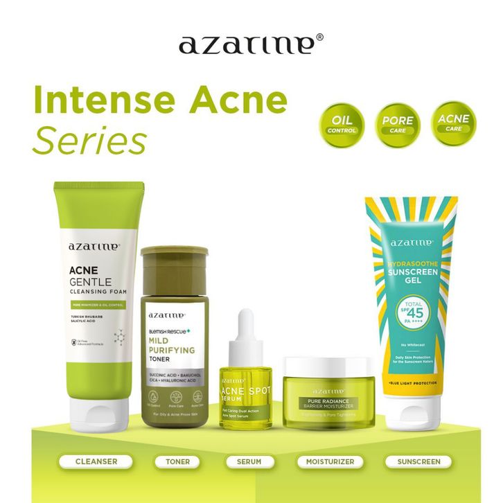 Azarine Intense Acne Series 5 pcs Paket Skin untuk Mengatasi Jerawat dan Acne Prone Skin with Sunscreen
