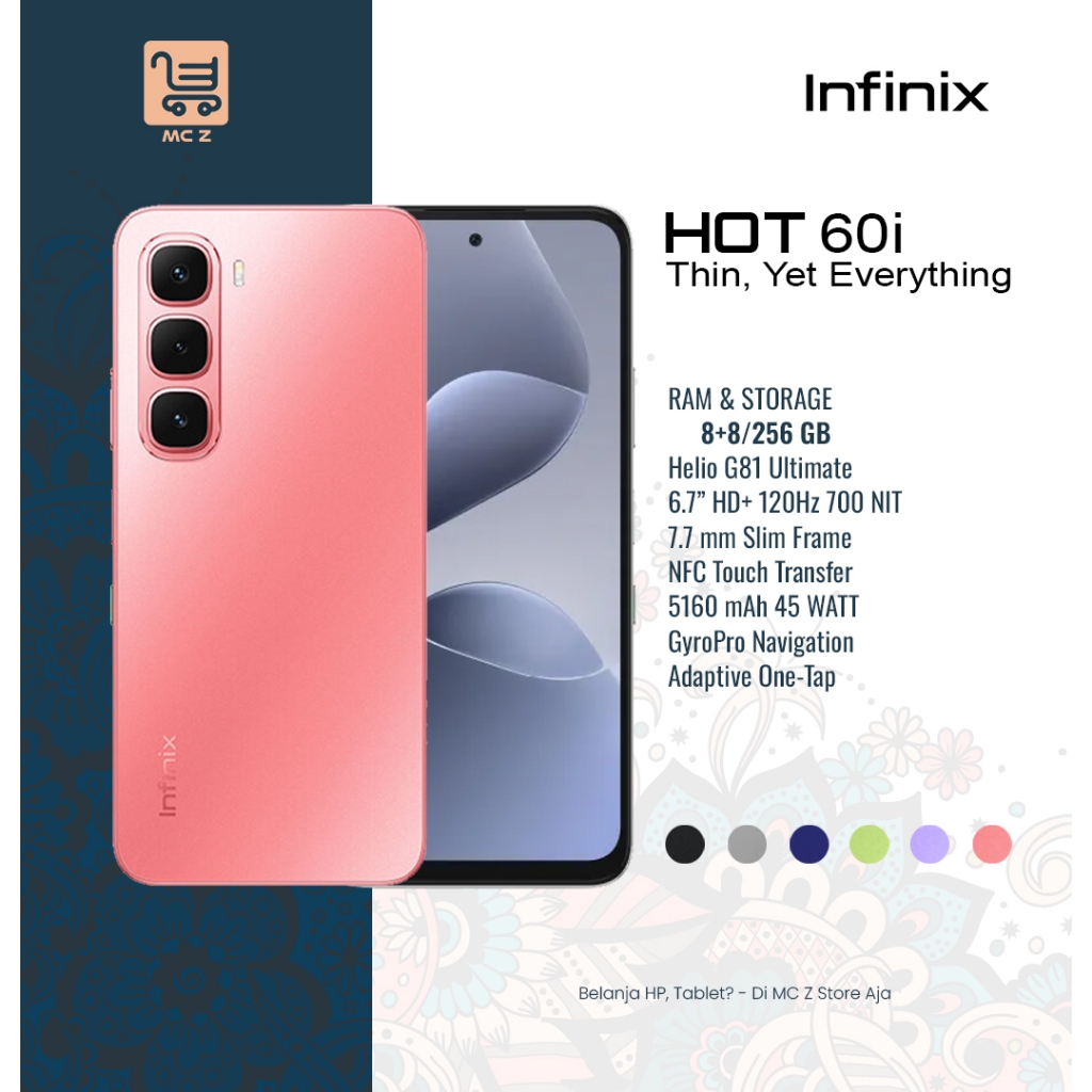 OFFICIAL INFINIX HOT 60i, RAM 8+8/256 GB - NFC Touch Transfer - 45W 5160 mAh - 5 Year Durable Battery - Helio G81 Ultimate - 6.7" 120 Hz Display - 7 mm Slim Frame - GyroPro Navigation - Garansi Resmi