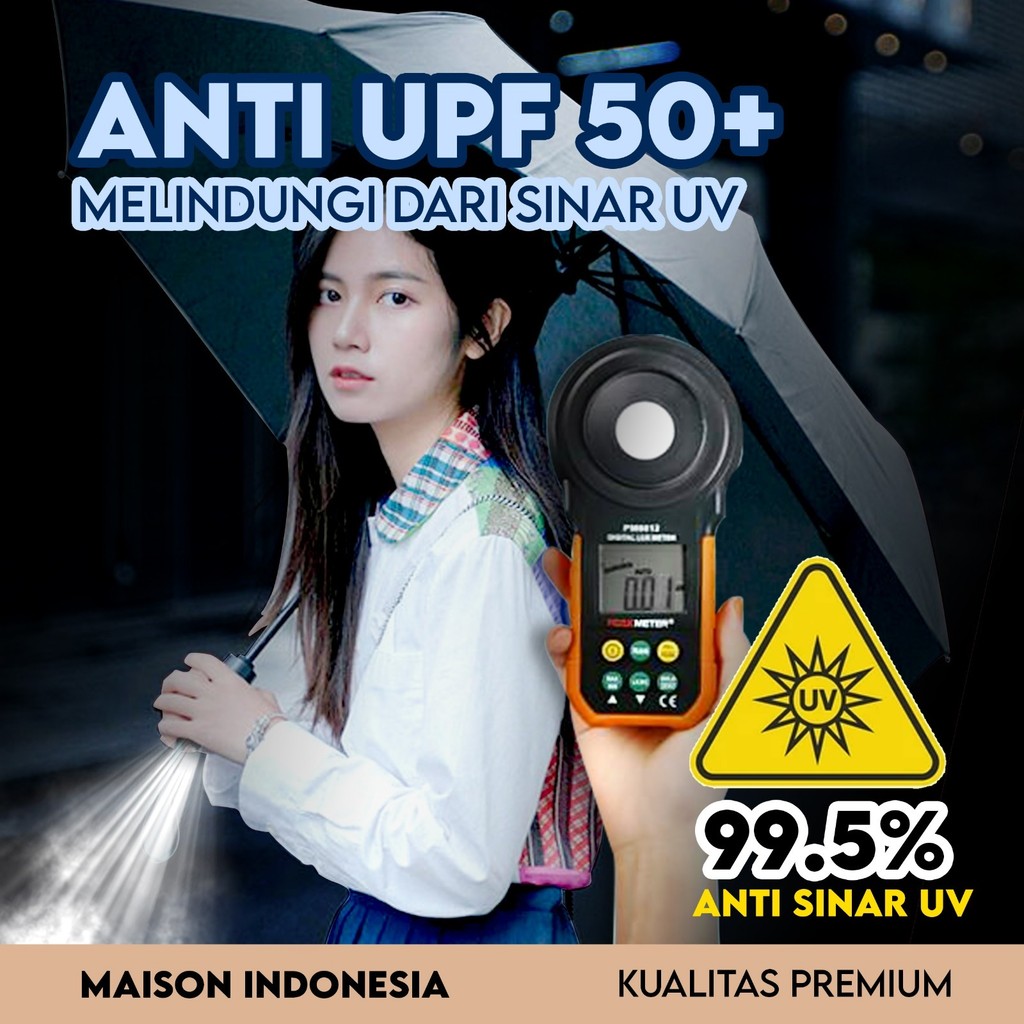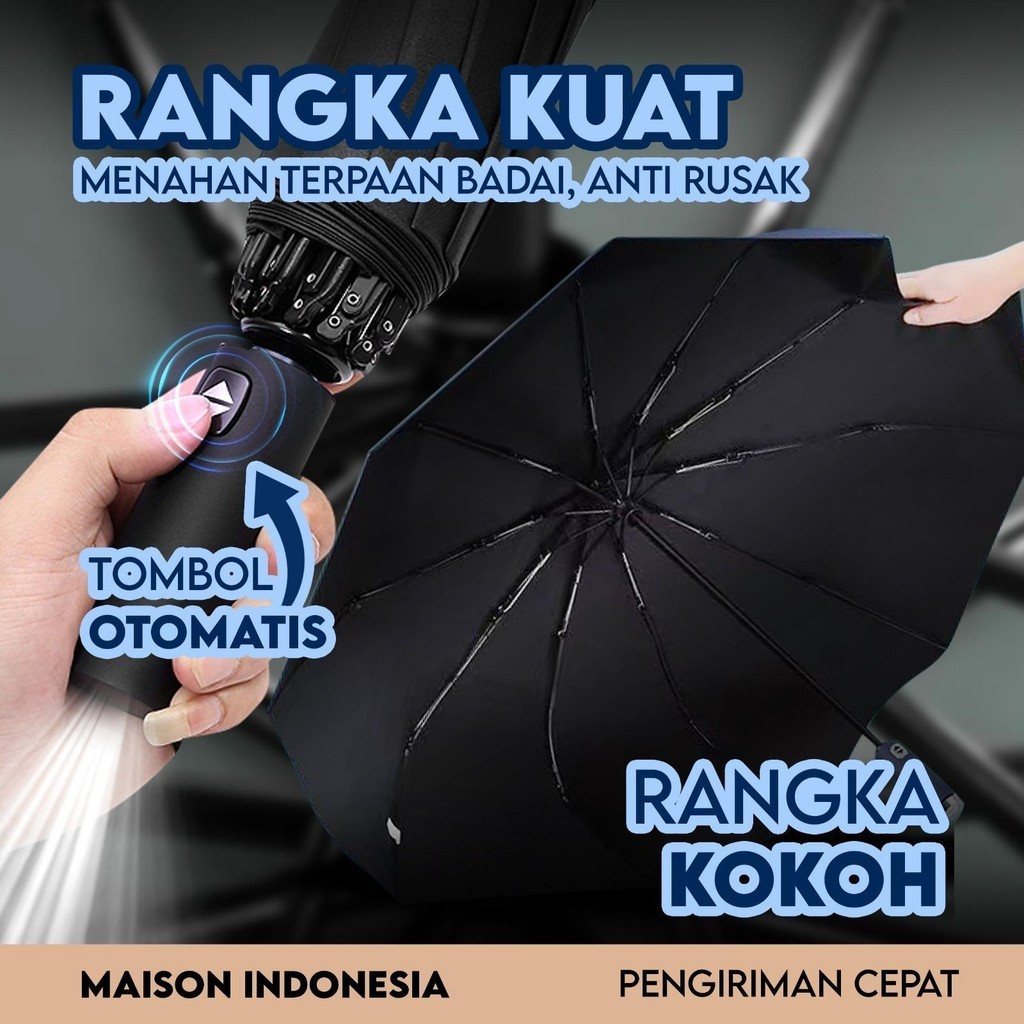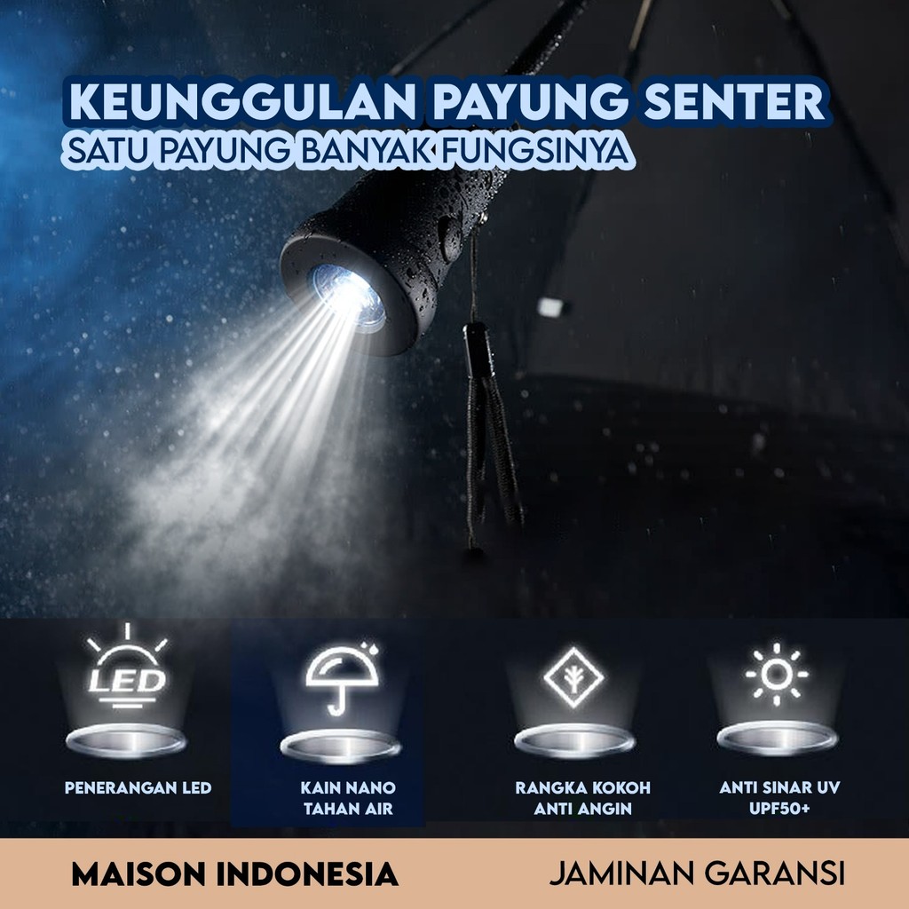 Payung Lipat Senter LED Premium Camping Anti Panas Anti Badai Hujan Buka Tutup Otomatis