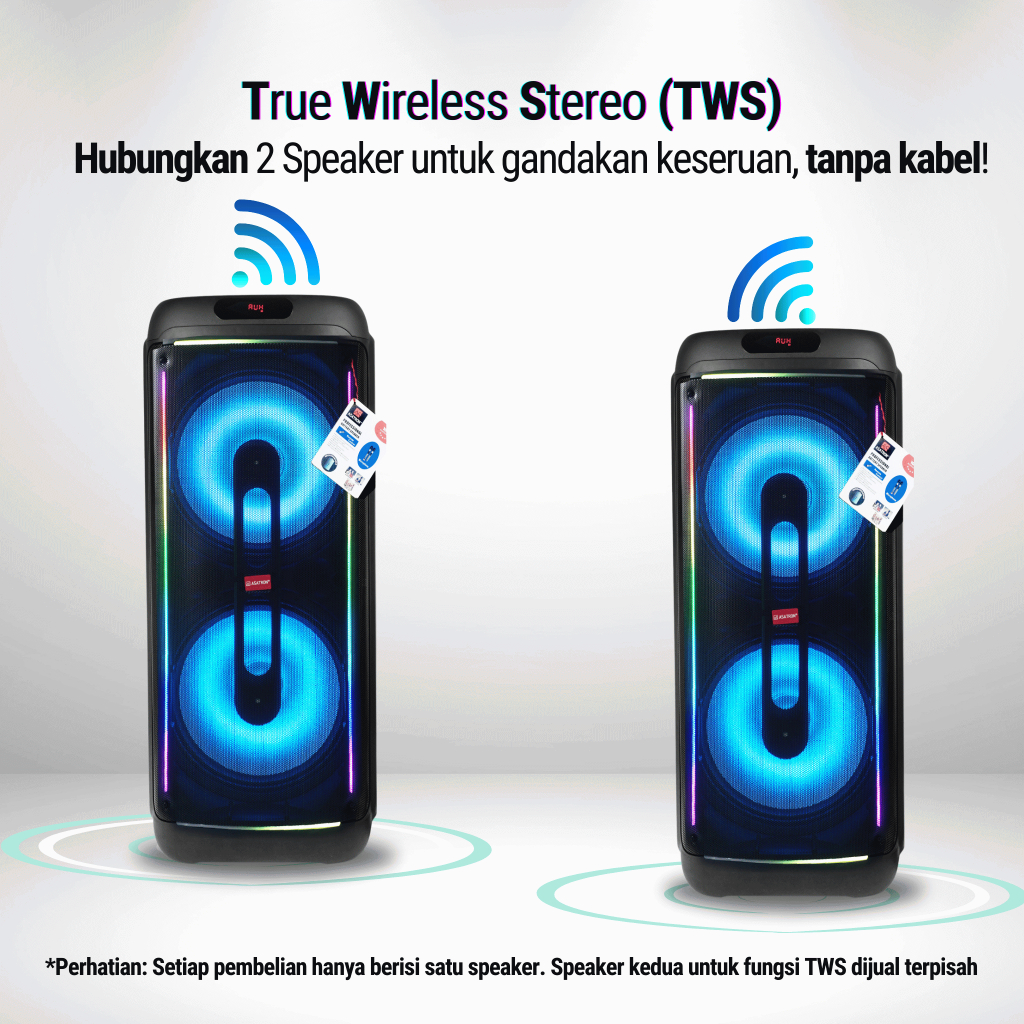 Asatron Atlantic Dual 15 Inch Bluetooth Party Speaker with 2 Wireless Mic