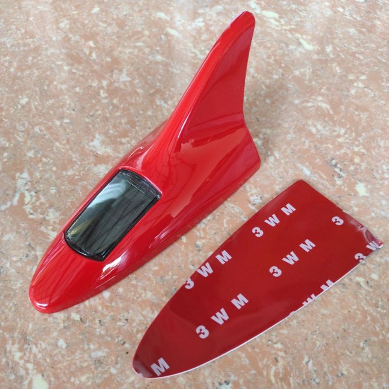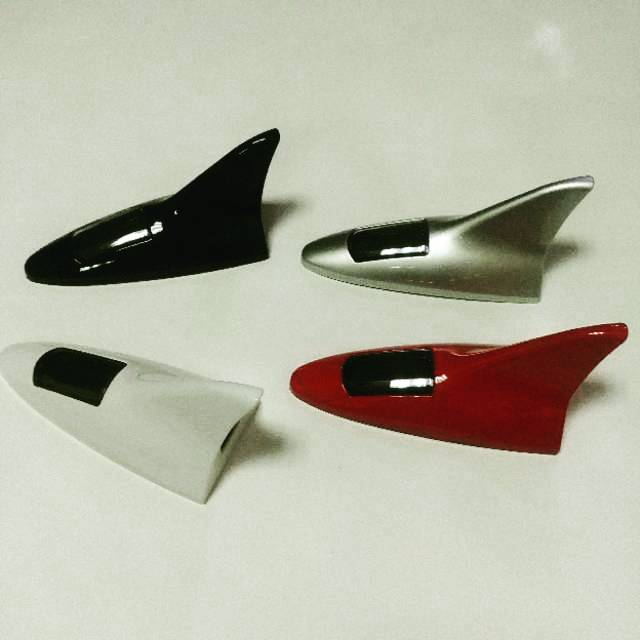 Antena mobil model sirip hiu shark fin tenaga surya matahari solar cell lampu LED D01 HITAM PUTIH SILVER ABU MERAH