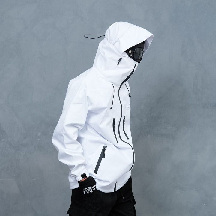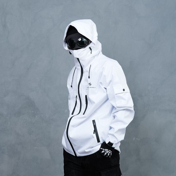 Jaket Gocore Wateroof Anti AIR Windbreakers Uni 4 Zipper Pocket Art Nagoya - Putih