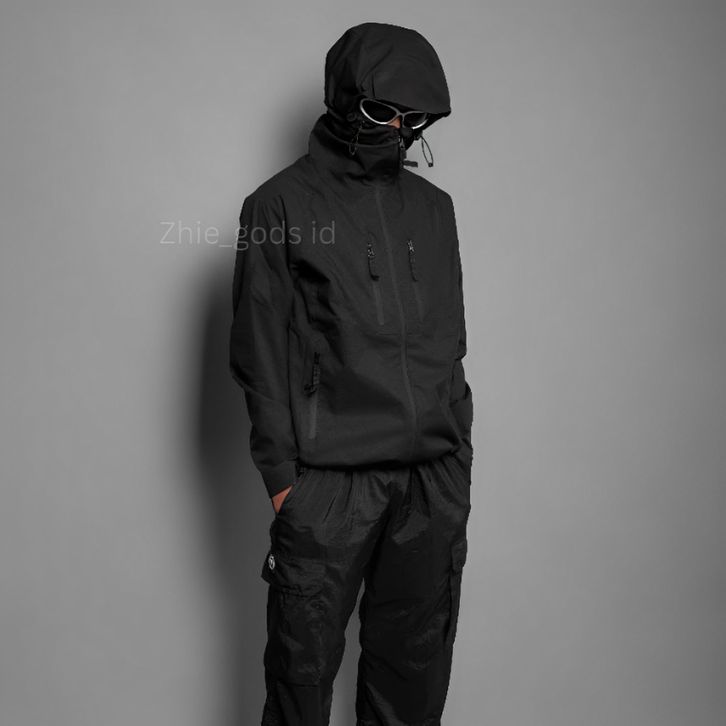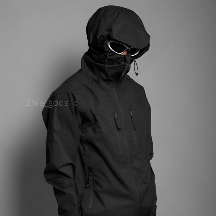 ZhieGods - Outwear Jacket - Hurricane Black Jaket Gunung Gocore Bahan Taslan Balon Full Seamsealed