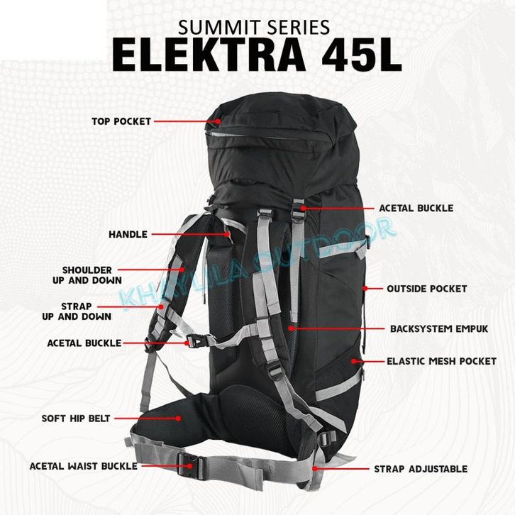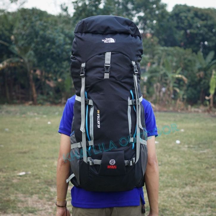TAS RANSEL CARRIER GUNUNG ELECTRA 60 LITER DAN 45 LITER RAINCOVER TAS PENDAKI GUNUNG PRIA DAN WANITA