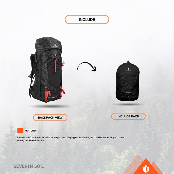 BOGABOO SEVERIN 50 Liter + TAS Daypack 15 L - Tas Gunung carrier Ultralht 50 L - Tas Ransel Camping
