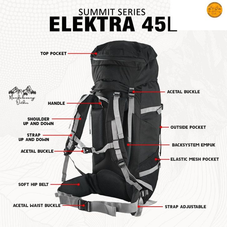 TAS RANSEL GUNUNG ELECTRA 45 DAN 60 LITER INCLUDE RAINCOVER TAS CARRIER PENDAKI HIKING PRIA DAN