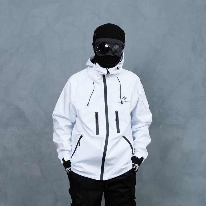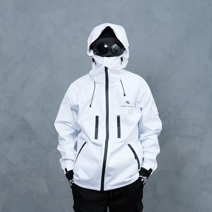 Jaket Gocore Wateroof Anti AIR Windbreakers Uni Series 4 Pocket Zipper Art Nagoya - Putih