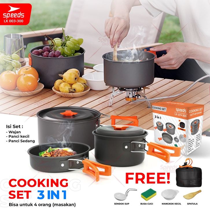 SPEEDS Alat Masak Camping Piknik 3in1 Portable Alam Mendaki Serbaguna Mancing Cooking Set Outdoor