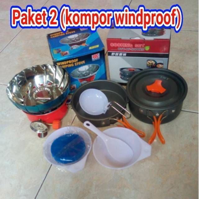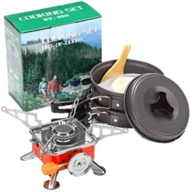 Paket alat masak camping murah : Cooking set & Kompor gunung untuk 1-3 orang
