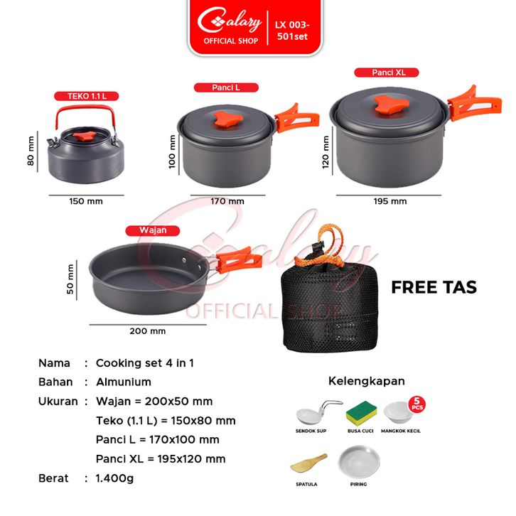 Panci Nesting Camping Piknik Portable Alat Masak Multifungsi Luar Ran Simple 003-501