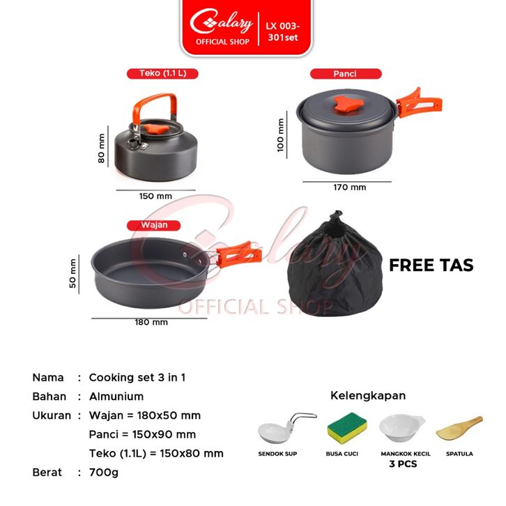 Panci Nesting Alat Masak Piknik 3in1 Portable Nature Multifungsi Mancing Camping Outdoor Set 003-301