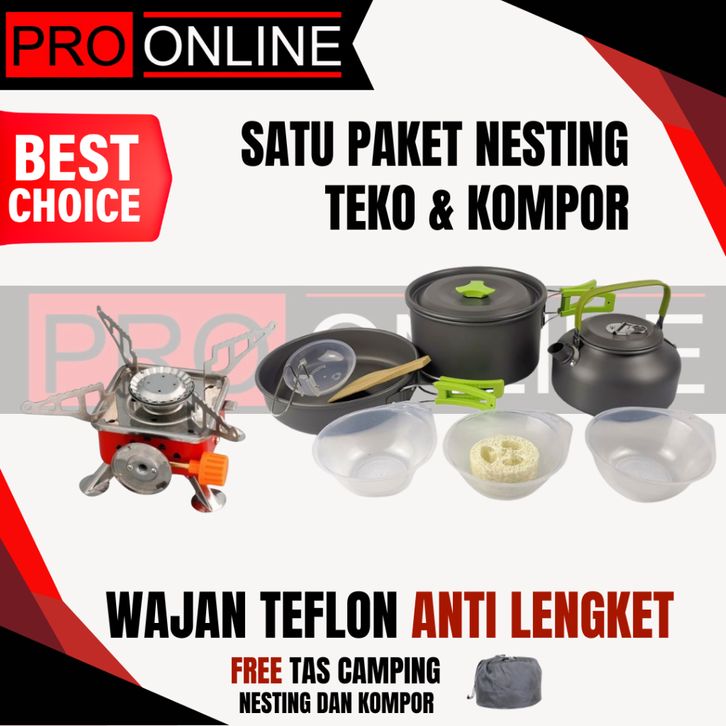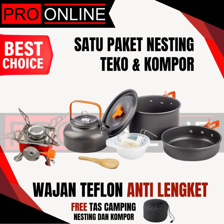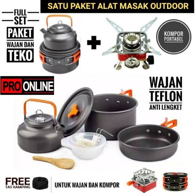 Cooking Set Teko/Ceret Wajan Dan Kompor Portabel / Paket Teko wajan Dan Kompor Camping Outdoor