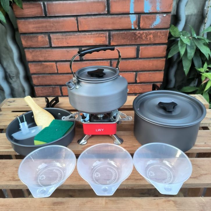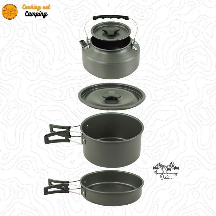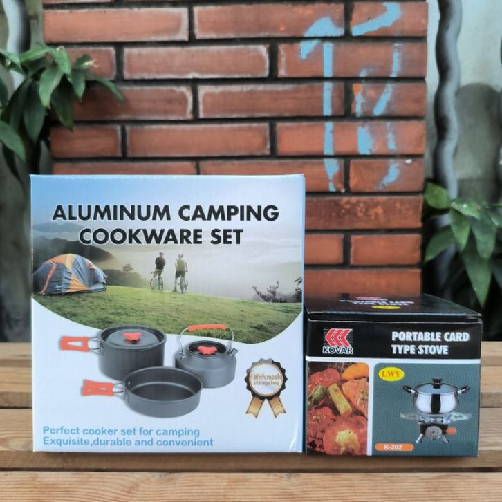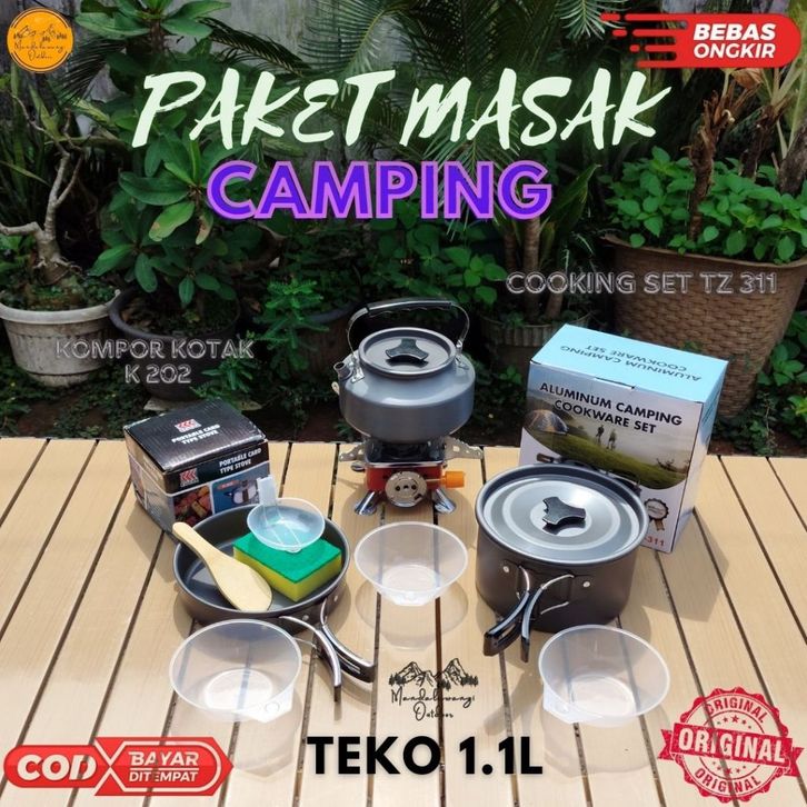 PAKET 1 SET ALAT MASAK CAMPING KOMPOR K203 K202 DAN COOKING SET TZ 311 BONUS TEKO LITER CAMPING