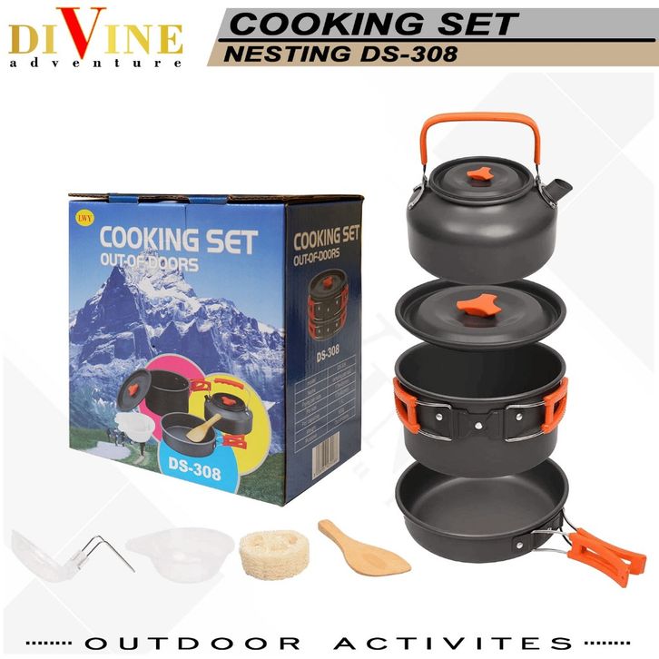 cooking set ds 3 nesting set lengkap includ teko mini portable alat masak camping outdoor alumunium