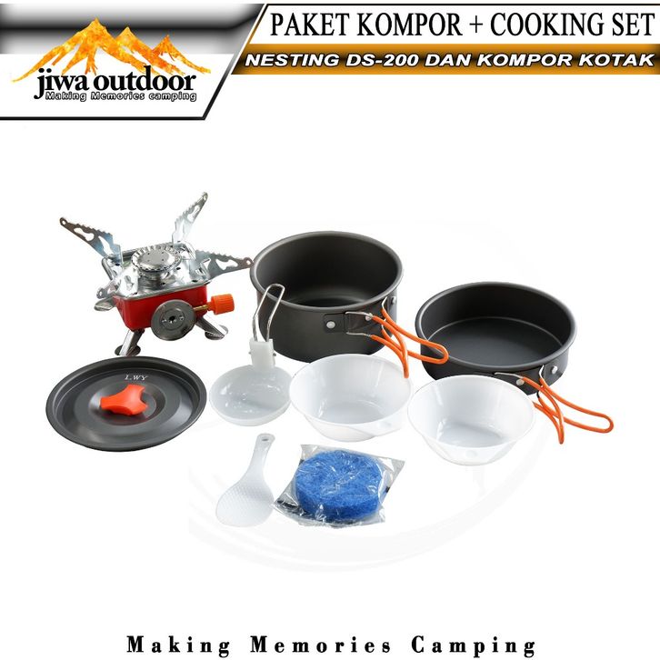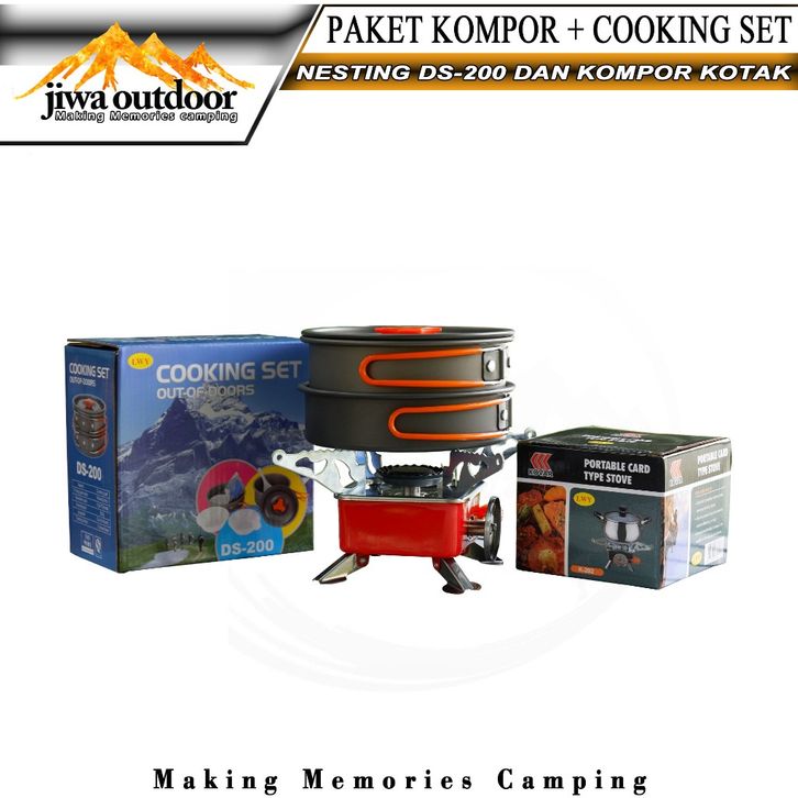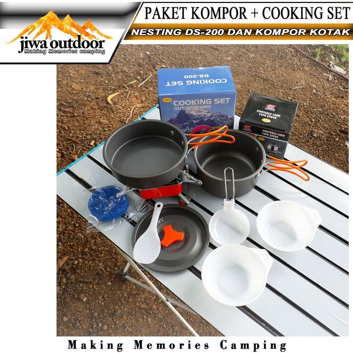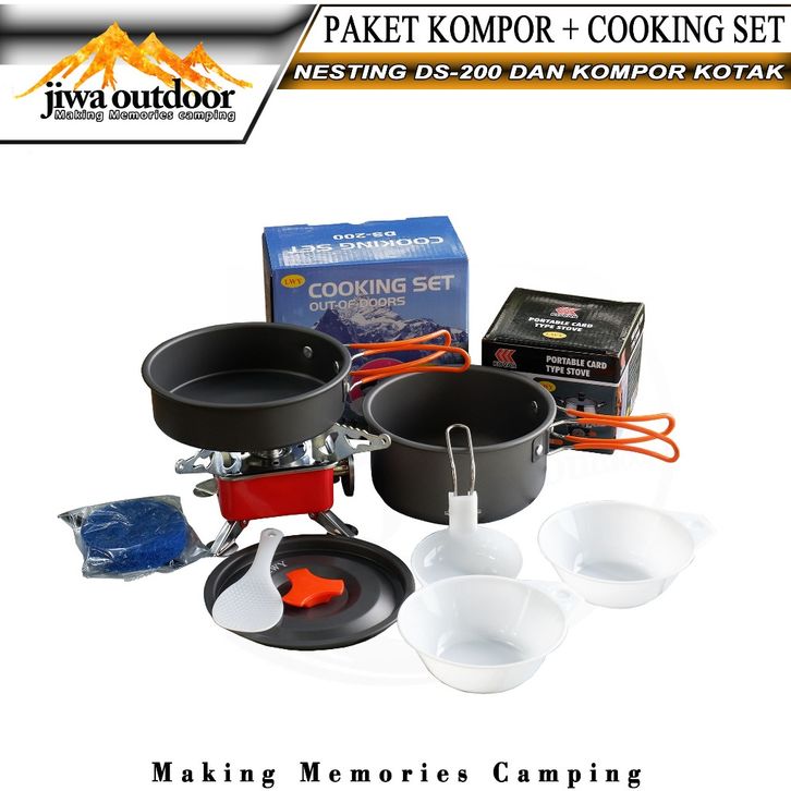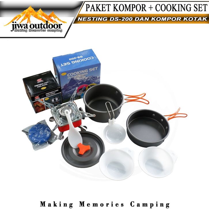 paketan cooking set ds-200 + kompor kotak portable camping paket hemat nesting ds200 dan kompor k202