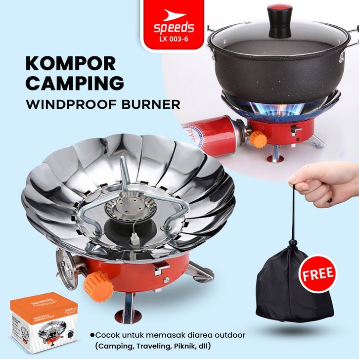 SPEEDS Kompor Gas Mini Camping Alat Masak Alam Kompor Lipat Bunga Anti Angin WindProof Nesting