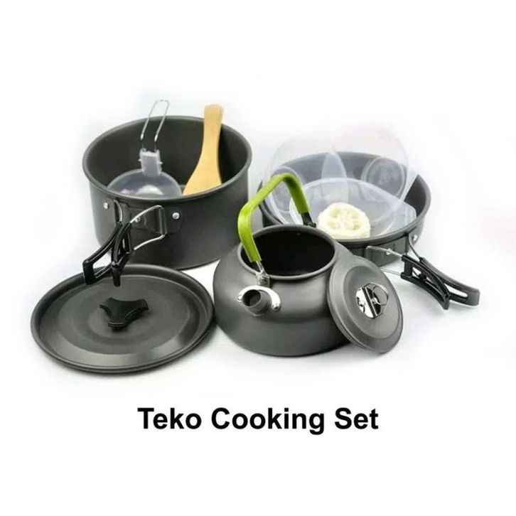 Paket Masak Camping Kompor Windproof K203 + Cooking Set 3