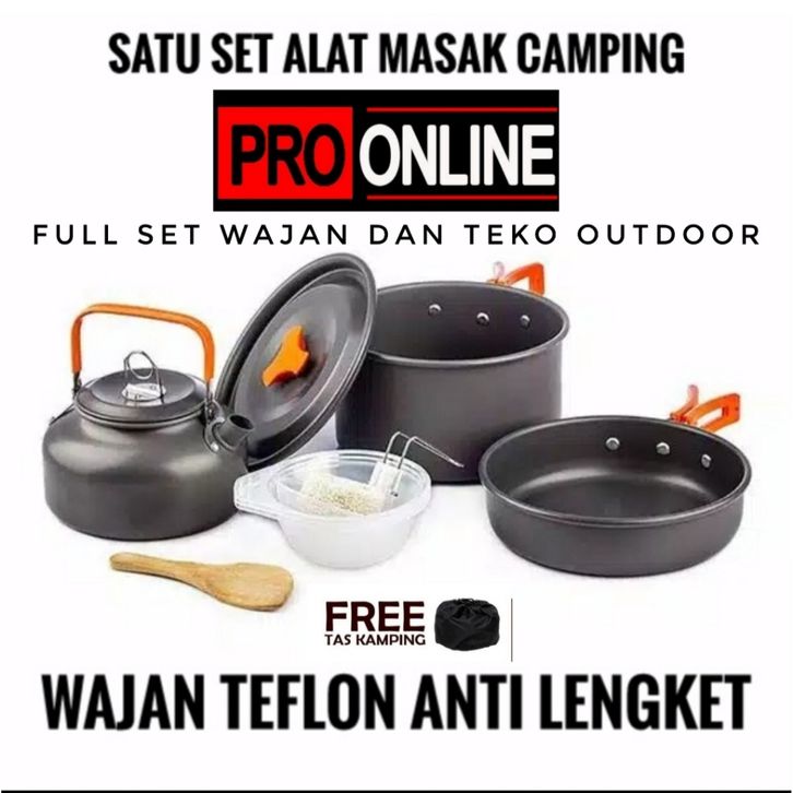Alat Masak Camping Full Set - Cooking Set DS 3 Sudah Ada Teko Air - Nesting Portable Traveling